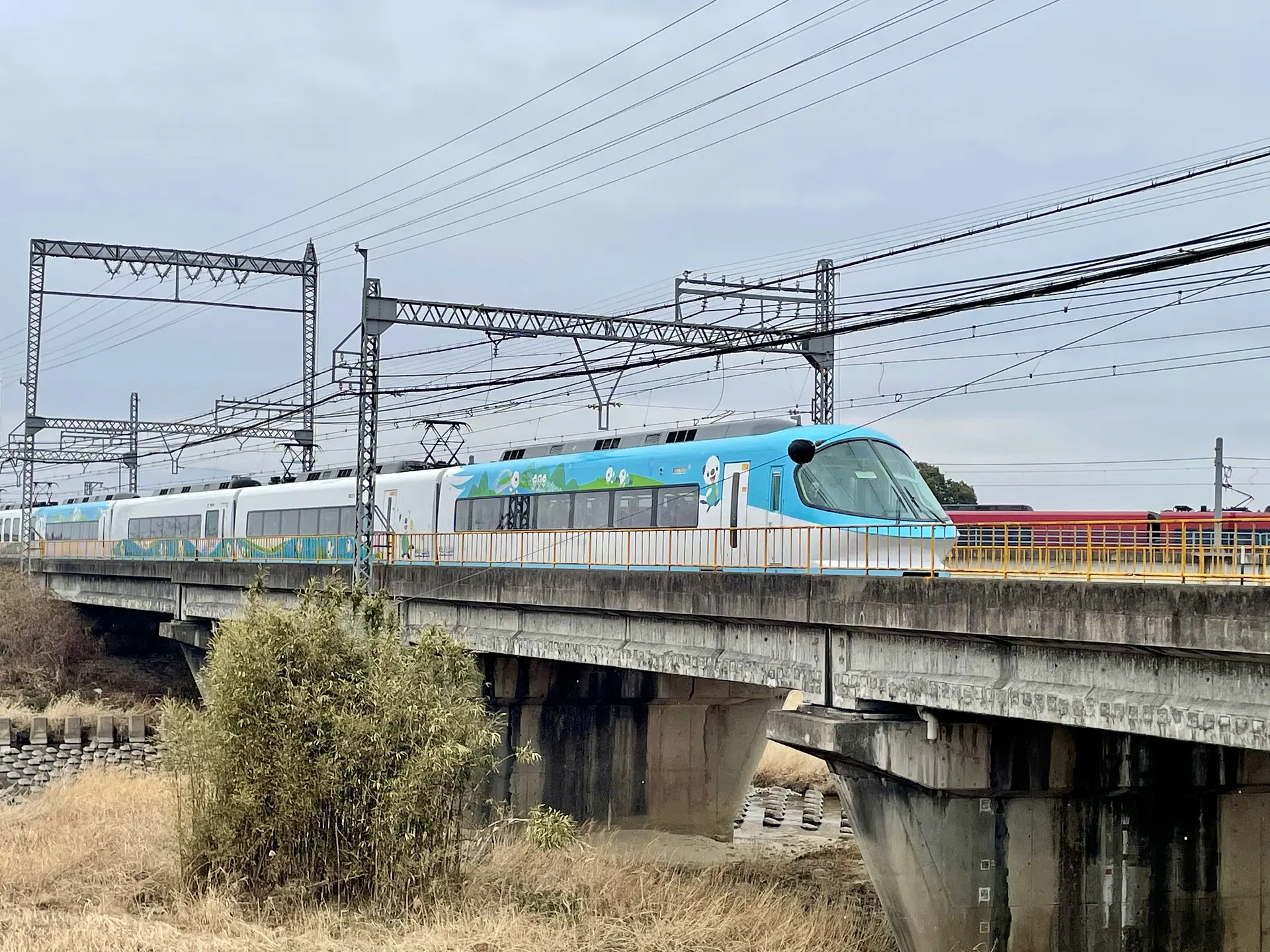 今回ラッピングした特急は先頭車両が展望デッキになっており、前面展望を楽しむことができます!沿線の景色や列車同士のすれ違いを楽しむことができますよ♪