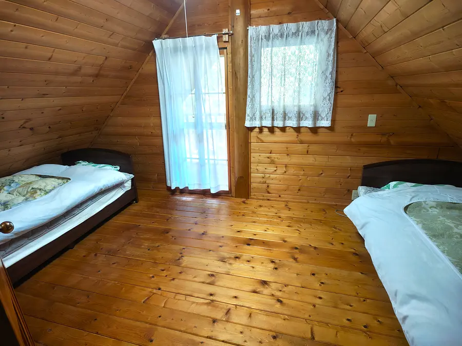大きいコテージには、リビングスペースとは別に和室や、寝室として使えるロフトがあります。寝具も用意されているので、荷物も少なくて済みますね!