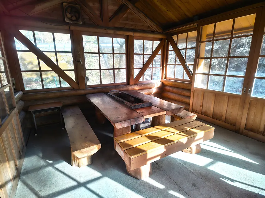 コテージには充実したキッチンもありますが、キャンプ場に来たならやっぱりBBQしたいですよね!「清流の里 ぬくみ」のコテージには、雨の日でもBBQが楽しめるように屋根付きBBQスペースが付いています。(BBQコンロとテーブル、丸太イス4つ程は用意されています。)BBQスペースを利用される場合は、網(幅35cm以上)や炭は各自でご持参くださいね!