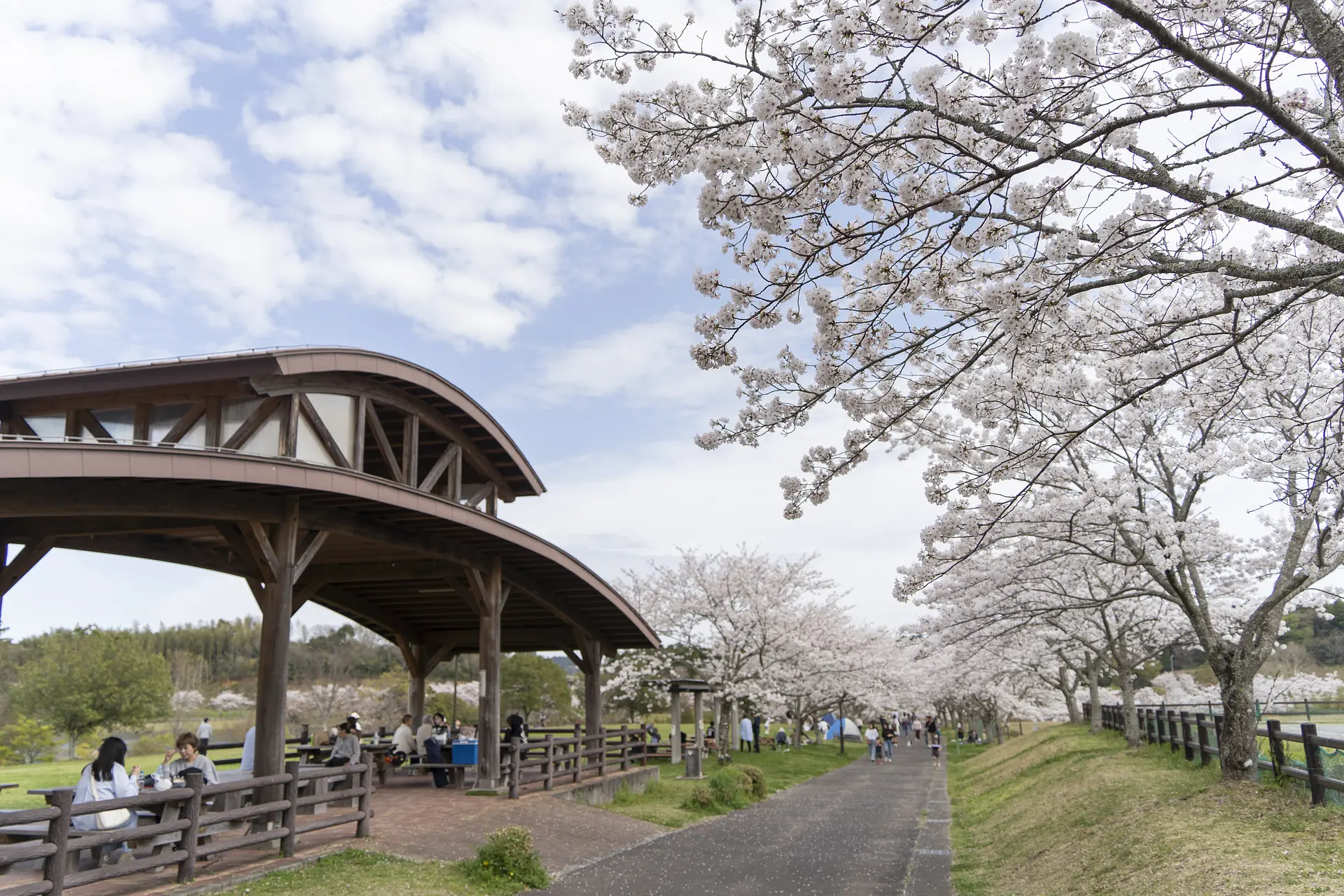 ヴィソンのある多気町内で最も広大な公園。なんと、東京ドーム2個分もの広さがあります。広場、池、庭園、遊歩道など、各所にたくさんの桜の木が植えられています。お弁当が広げられる机とベンチもたくさん!