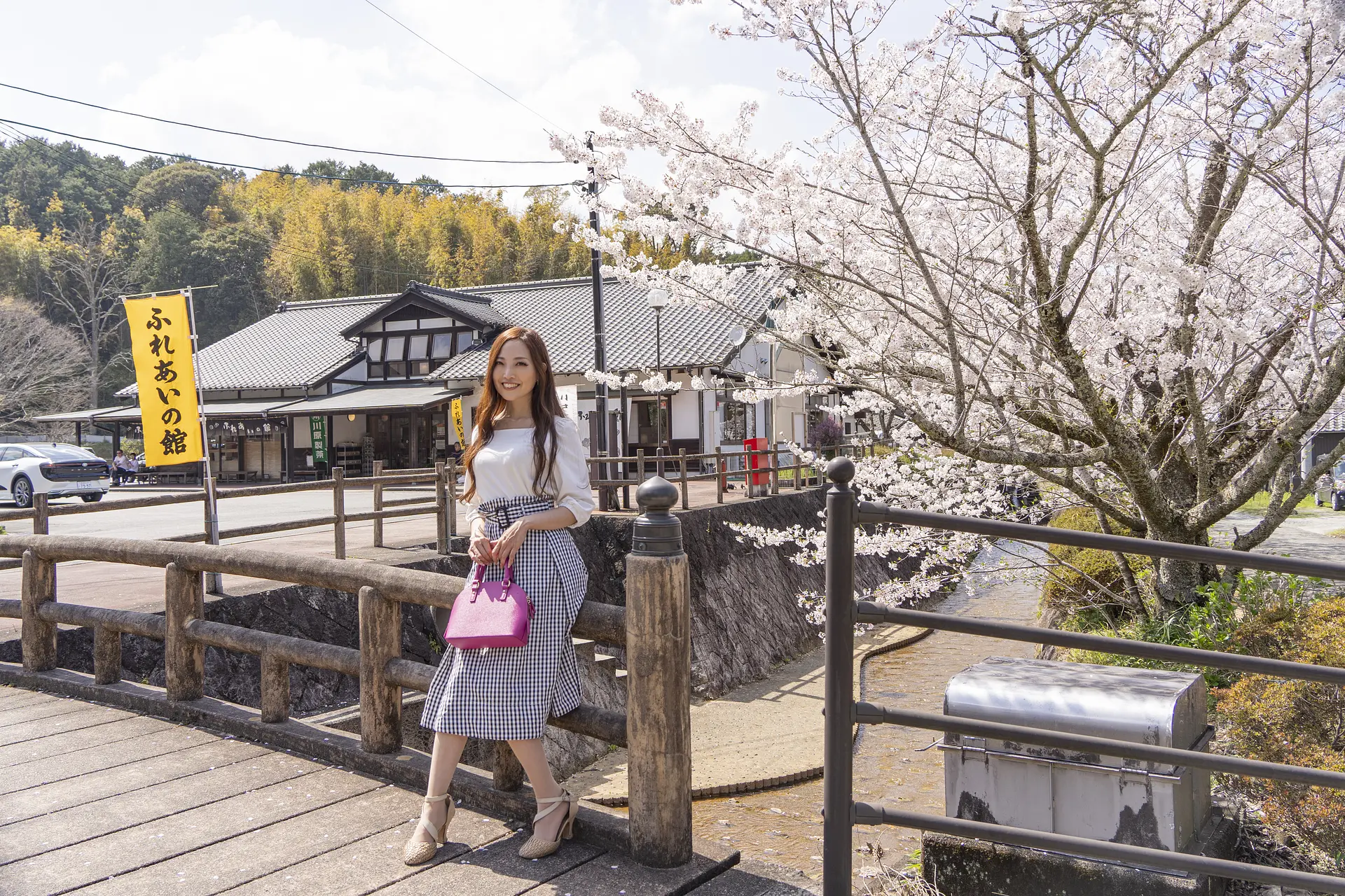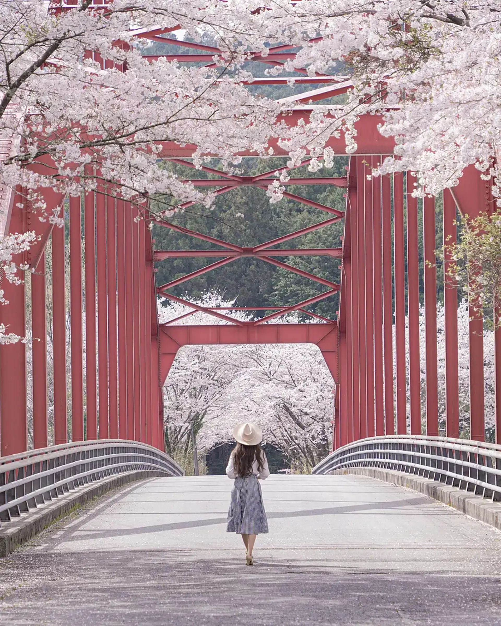 清流宮川に架かる赤い橋と桜が奇跡のような美しさを作り出す長ケ大橋も、ヴィソンから30分。一般道のため駐車場はありません。十分に注意して見物してください。