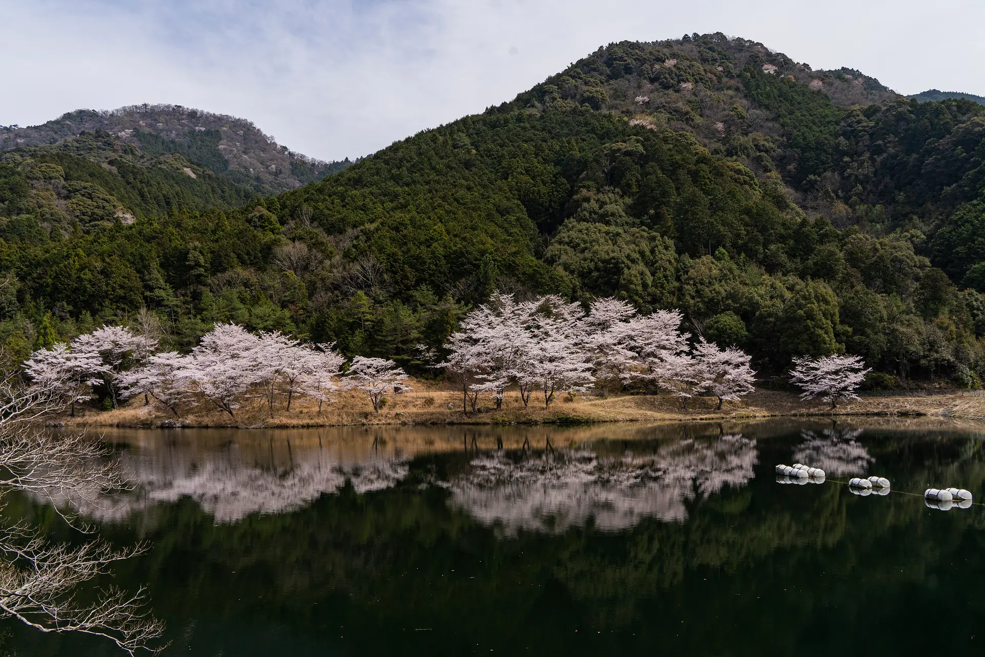 グルメにショッピングにアクティビティにと充実の観光施設「ごかつら池ふるさと村」は、三重県多気町にある五桂池のほとりの自然公園内にあります。2023年春リニューアル。池を囲むように並ぶほか、ロッジとバーベキューエリア周辺にも桜があります。