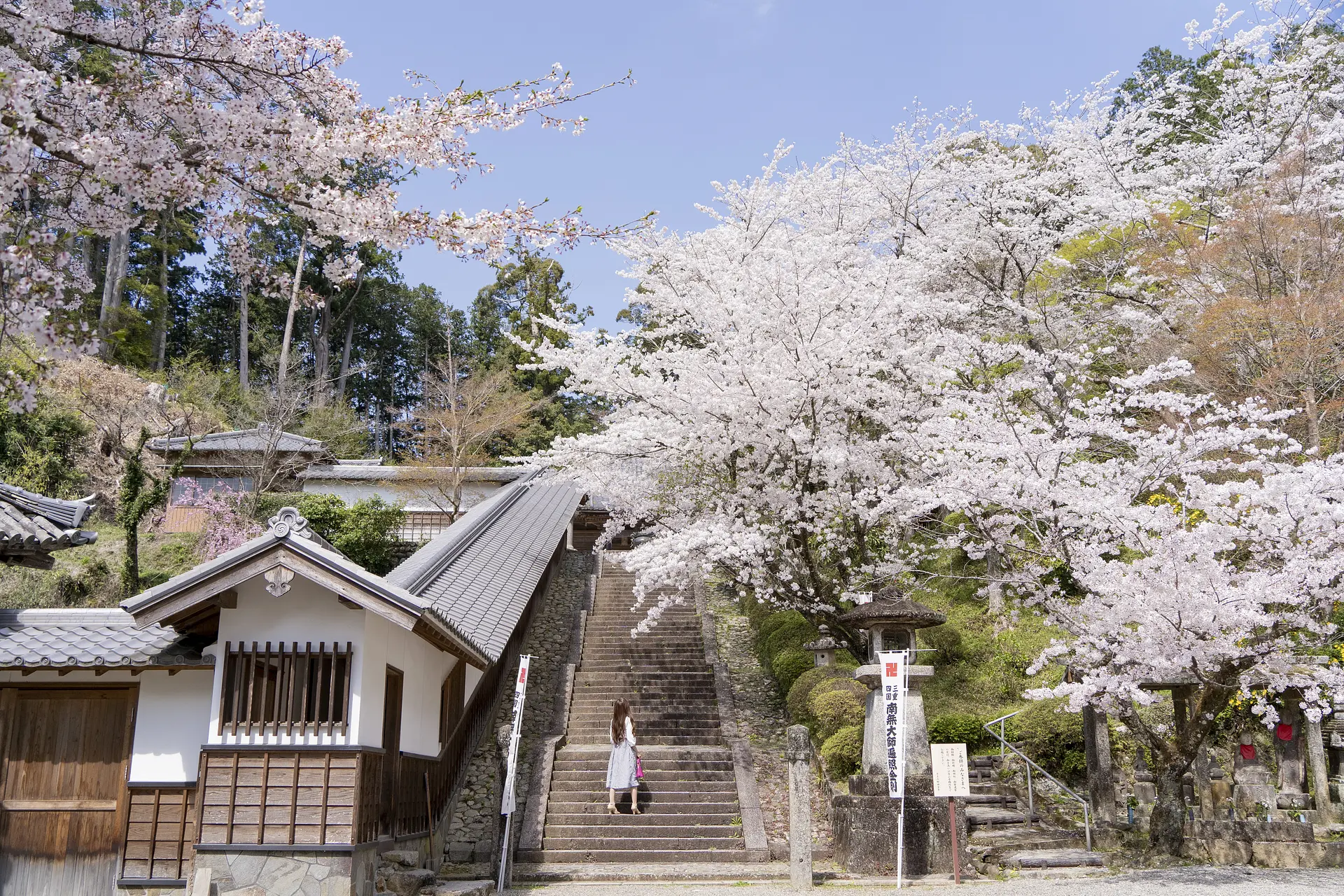 七堂伽藍へ向かう階段上に咲く桜が見どころです。お大師さん近くの「勢山荘」も桜の名所。
