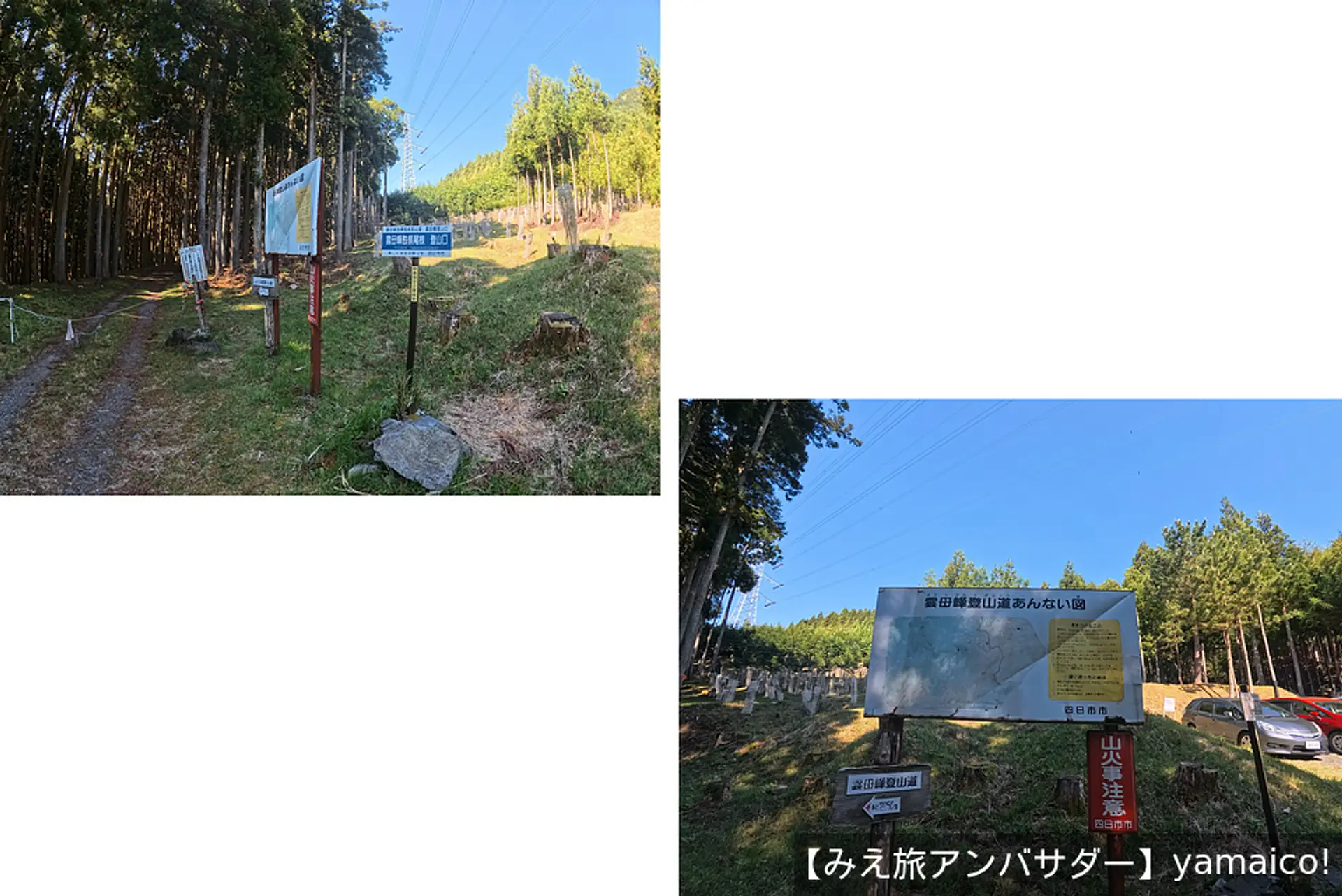 雲母峰独標尾根 雲母橋登山口(雲母橋登山口駐車場)からスタートします。登山口は、雲母橋登山口駐車場のとなり、看板の位置からスタートです!