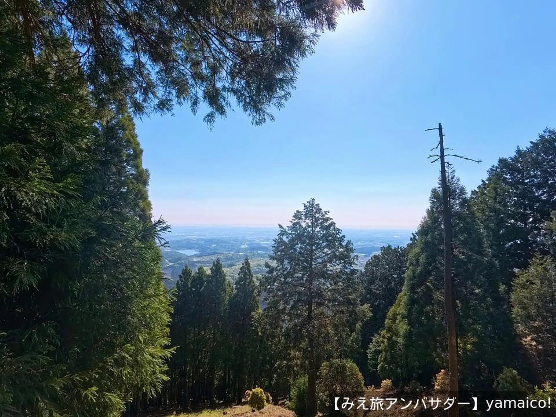 雲母峰山頂は、二次林(自然林がなんらかの理由で破壊された後に自然に再生した森林)の中のため見晴らしが良くないのですが、標高約860mに「雲母峰Ⅱ峰」と呼ばれるピークでは眺望が開けて景気を楽しむことができます。