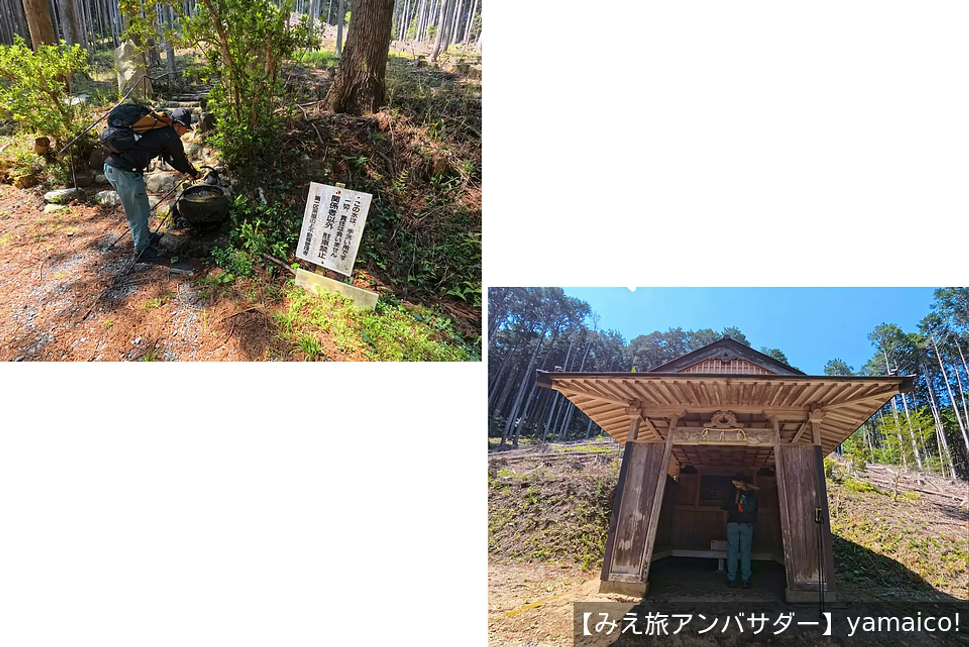 雲母峰山頂 瀬戸川道分岐から歩くこと約50分、岳不動祠に到着します。ここで今日、無事に登山できたお礼参りをしましょう。