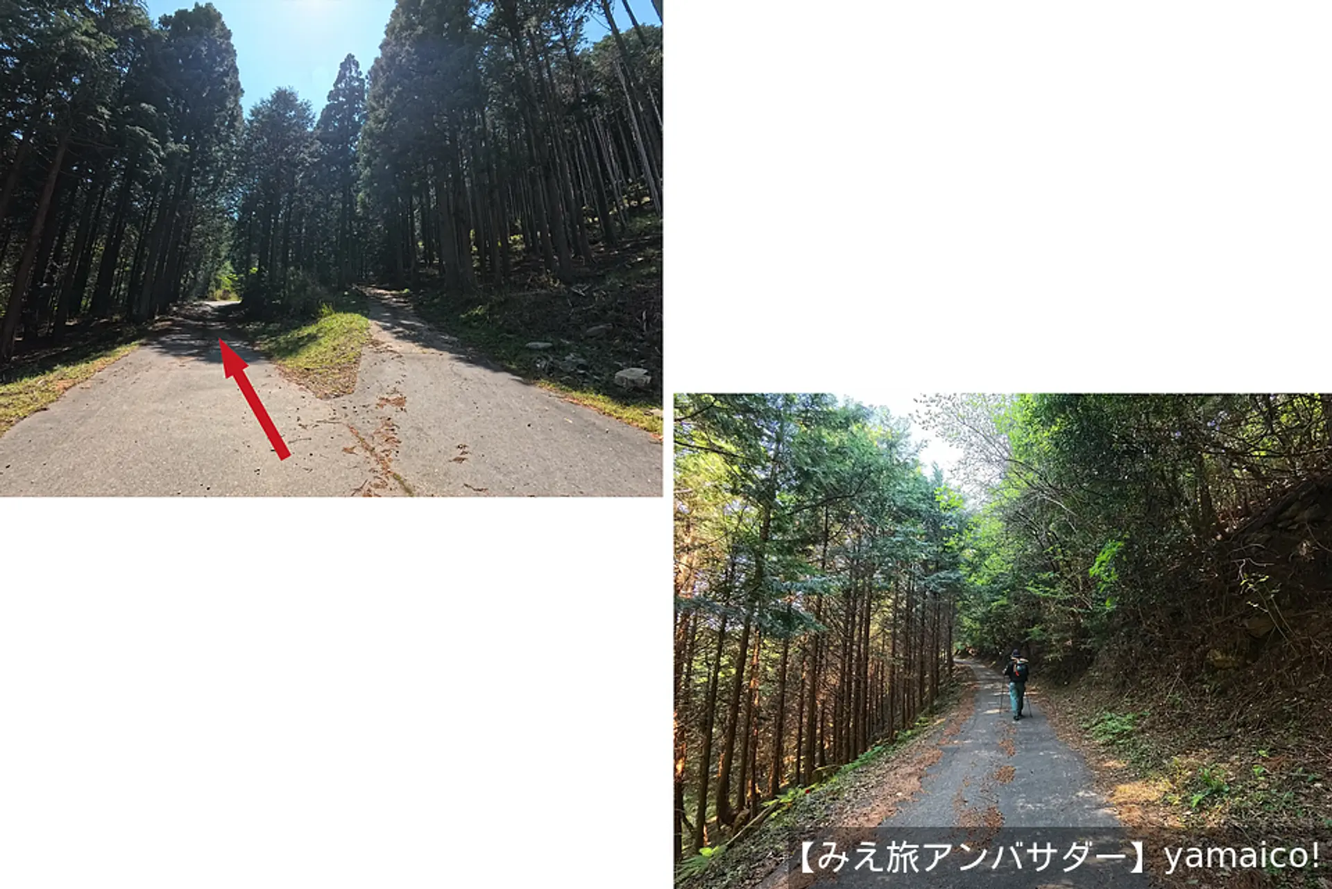 しばらく林道を歩いていきます。途中舗装された道を通り、登山口へと向かいます。