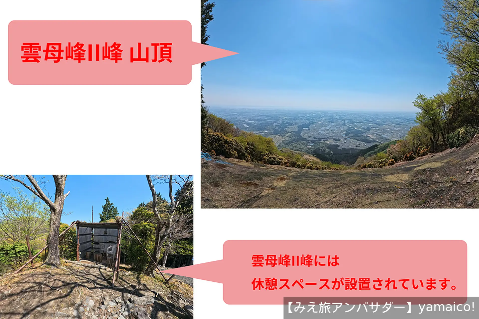 スタートから約1時間30分ほどで標高875mの雲母峰Ⅱ峰に到着しました。景色が開けていてとても良い眺めです!!パラグライダーの発射場にもなっていて、高度感が溢れる場所です。