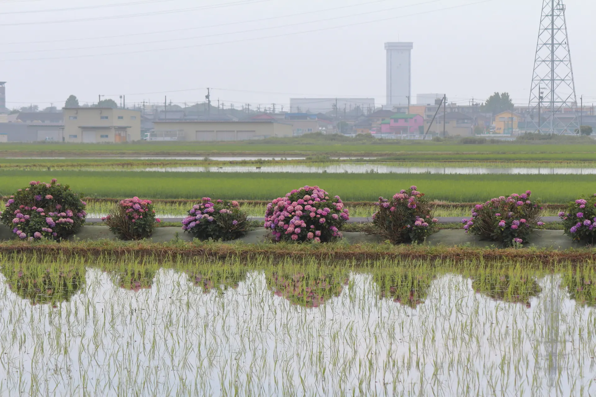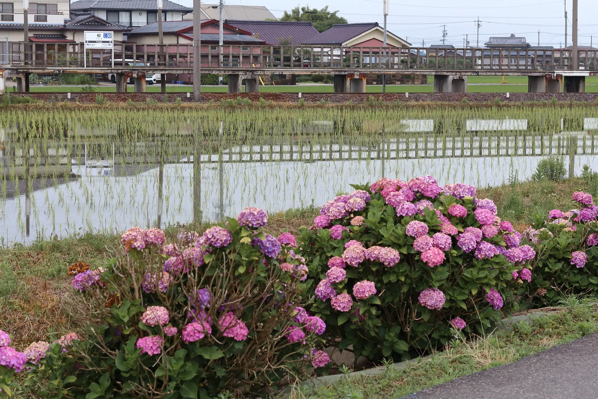 田園風景と紫陽花、他ではあまり見かけないスポットではないかと思います。この風情ある景色にご興味がありましたら、足を運んでみてはいかがでしょうか?