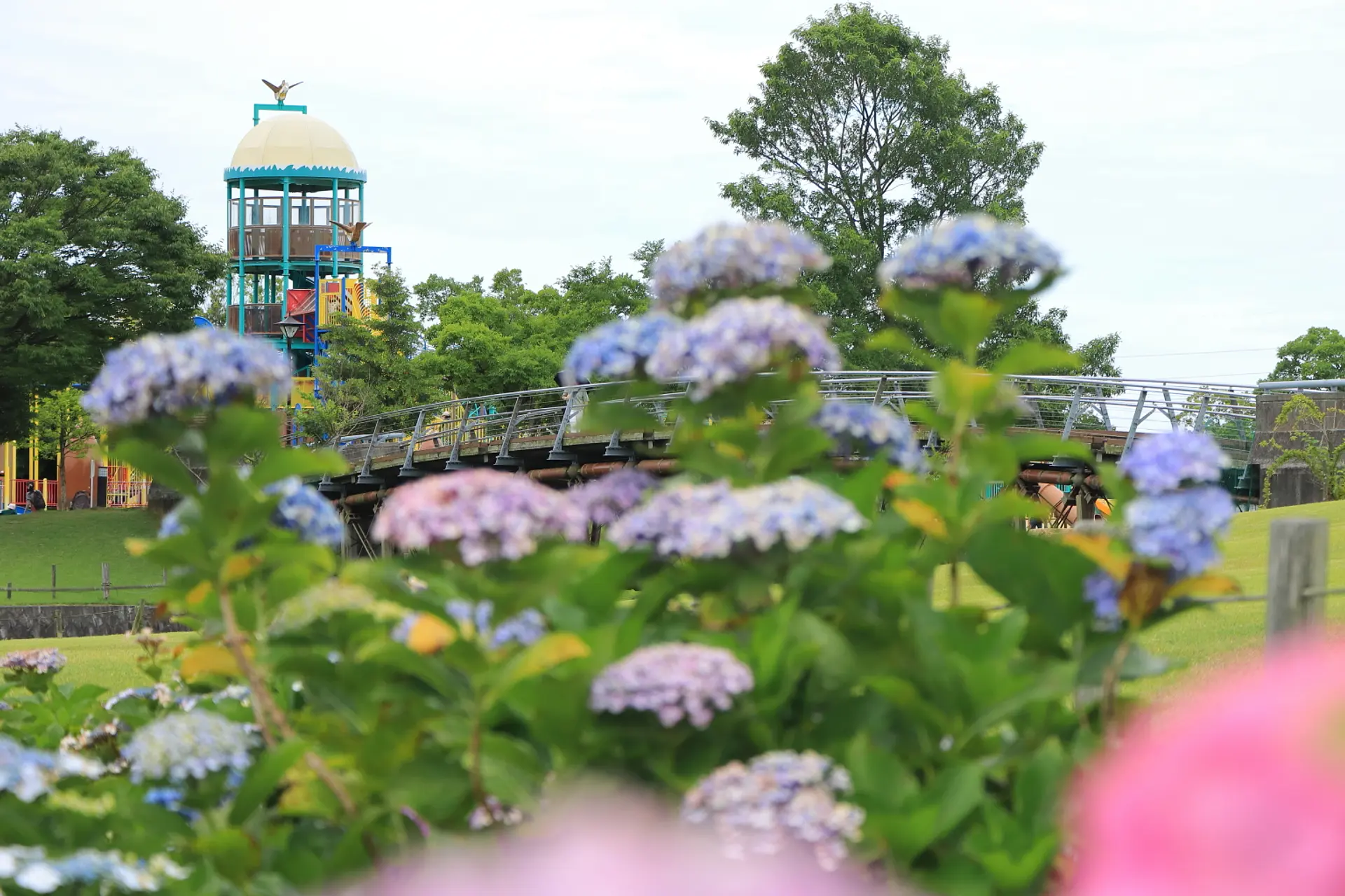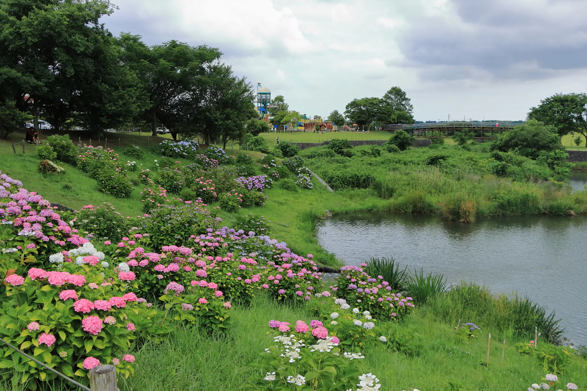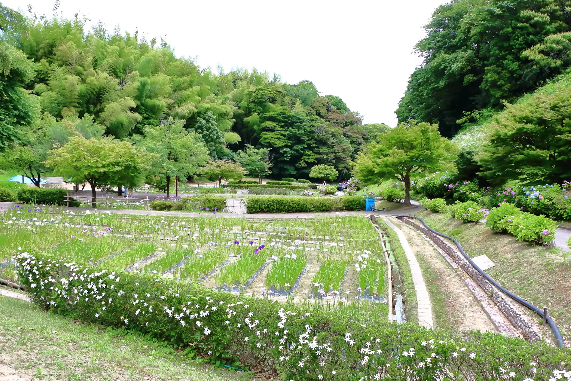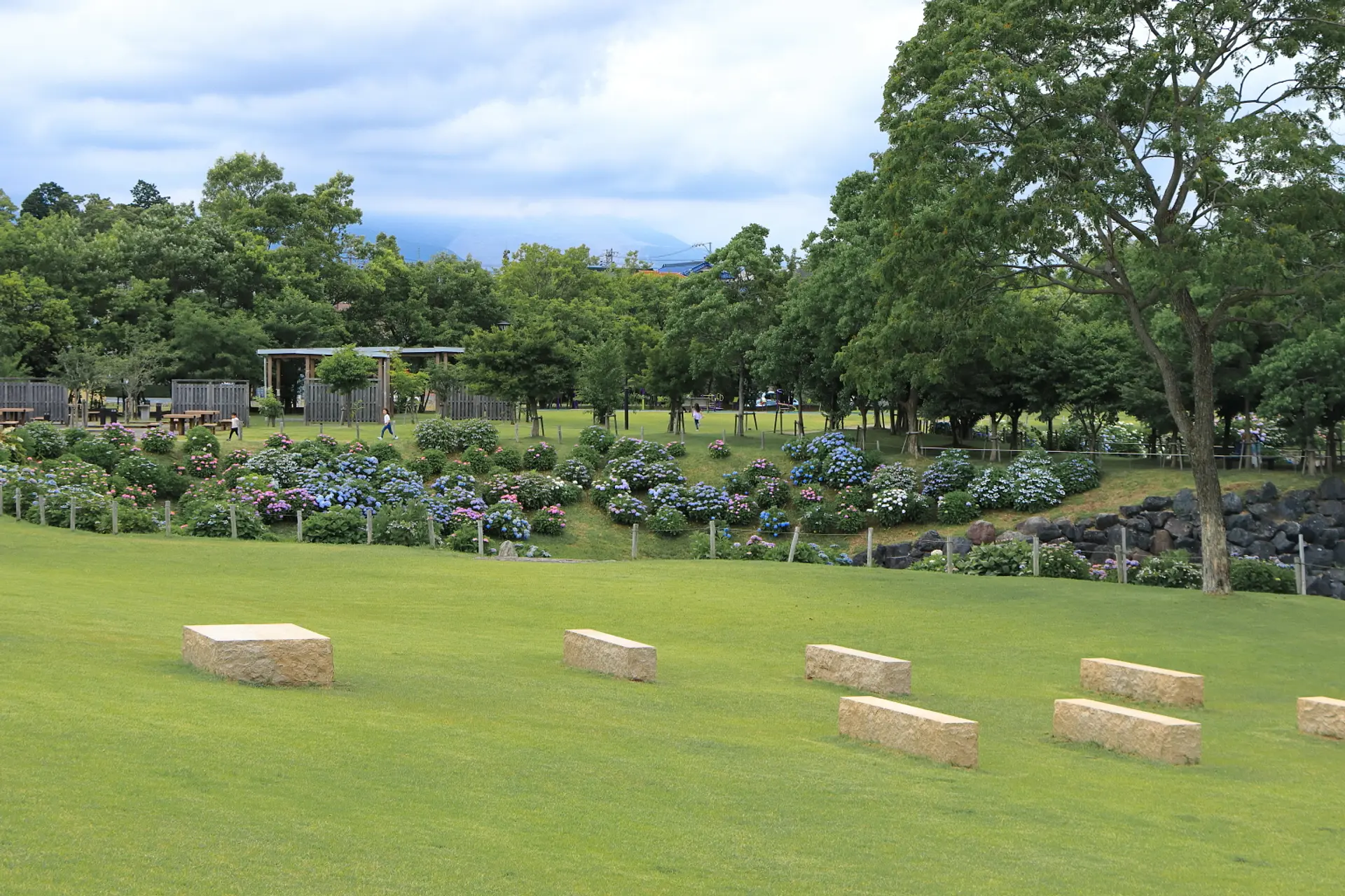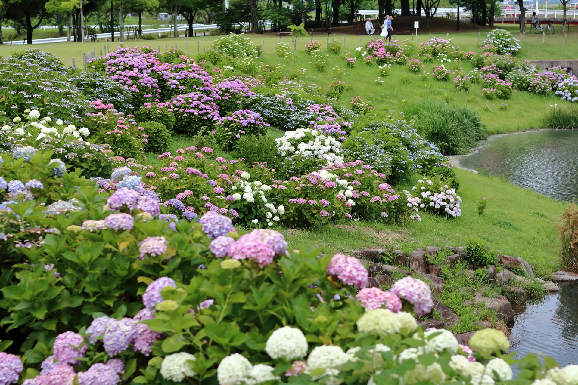 公園内には梅雨時の頃になると紫陽花が咲き乱れるスポットがあり、散策やピクニックに最適なロケーションとともに多くの人々の目を楽しませてくれます。