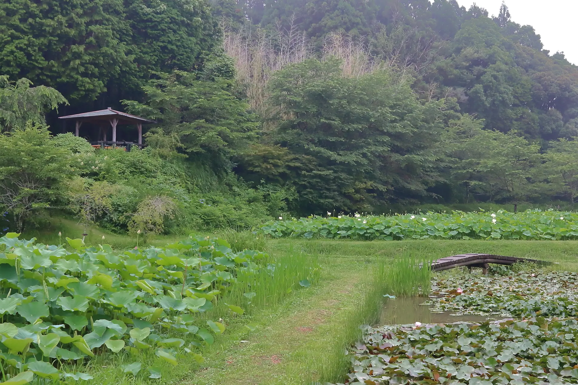 こちらは7月頃には花蓮の名所として知られていますが、5月下旬~6月中旬には紫陽花も綺麗に咲き誇り、自然豊かな落ち着いた雰囲気の中で楽めるスポットです。