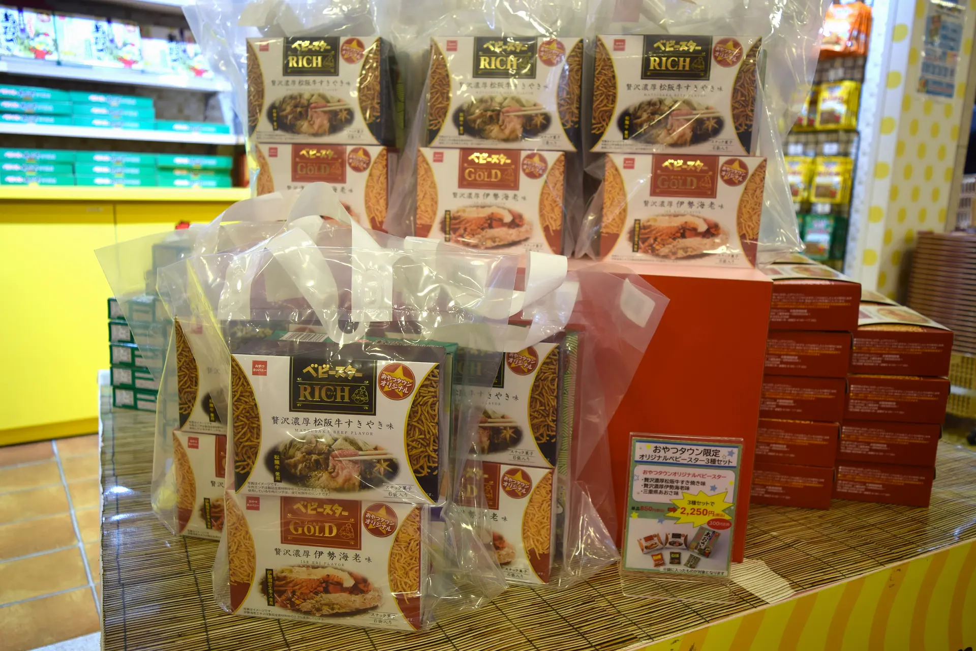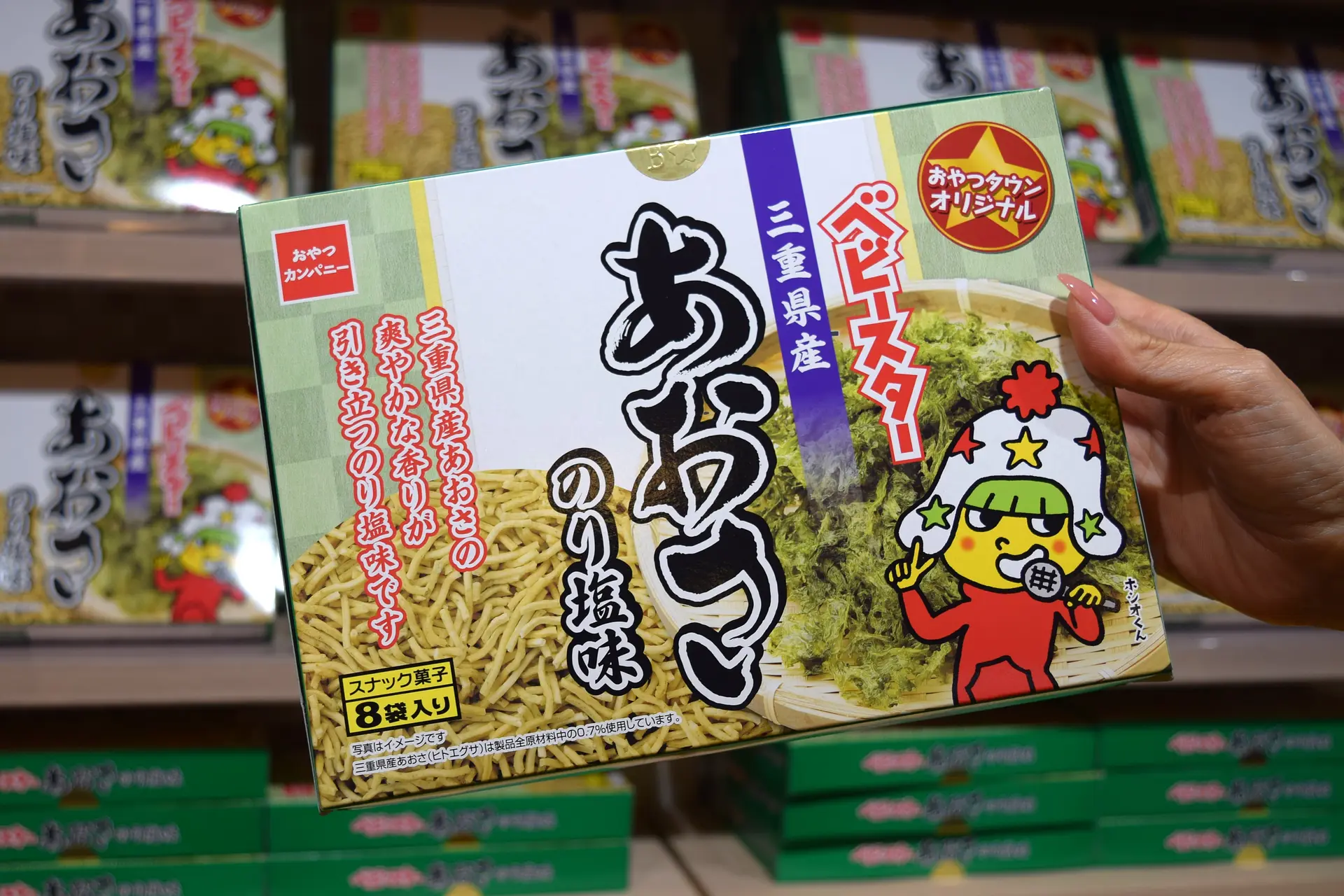 最初に紹介する人気商品は、おやつタウンだけのオリジナル、三重県の特産品の味のベビースターラーメンです。