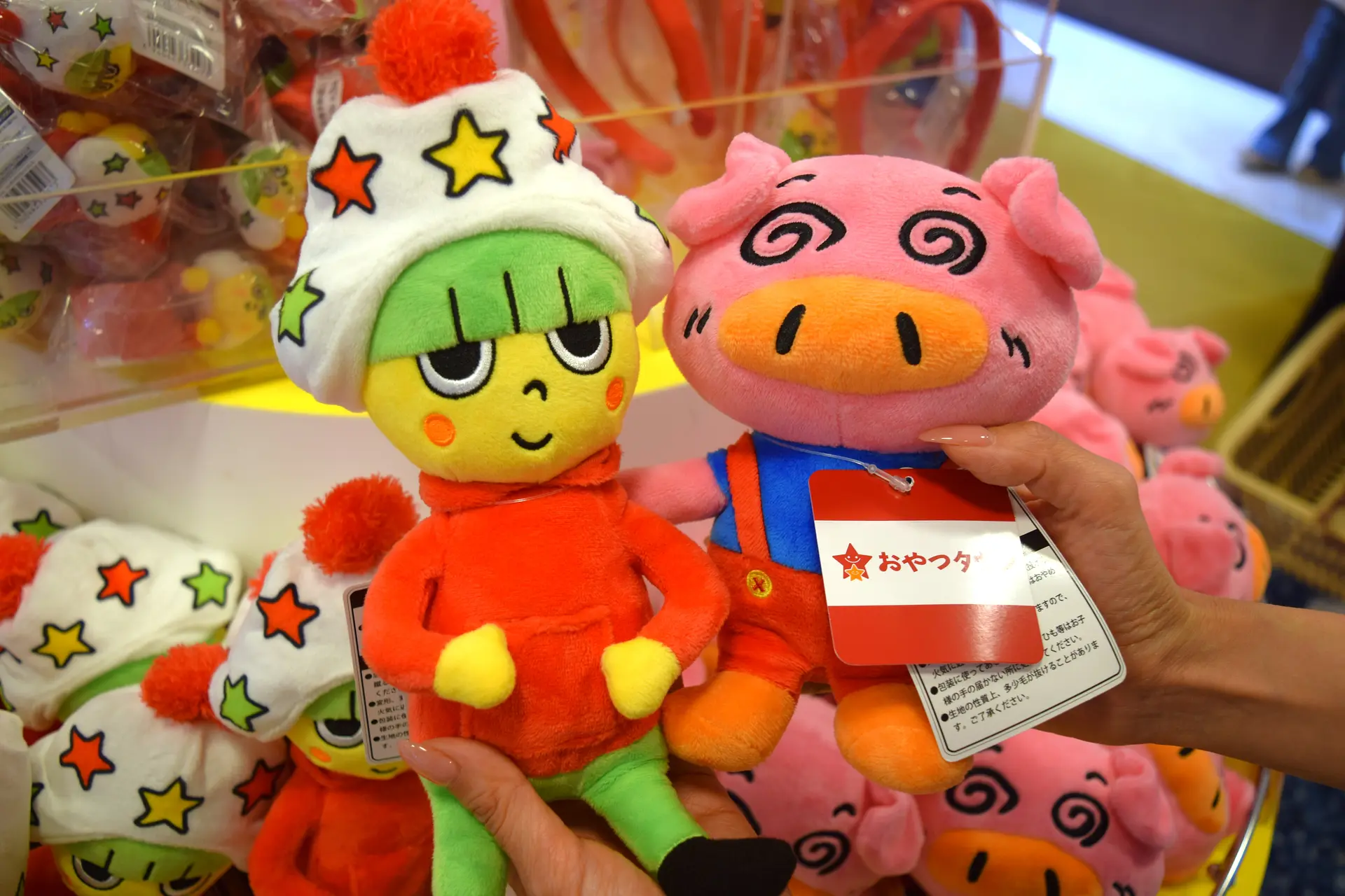 ちびっこたちのテーマパークのお土産の定番。ホシオくんやブタメンくんのぬいぐるみも大人気です。かわいい!