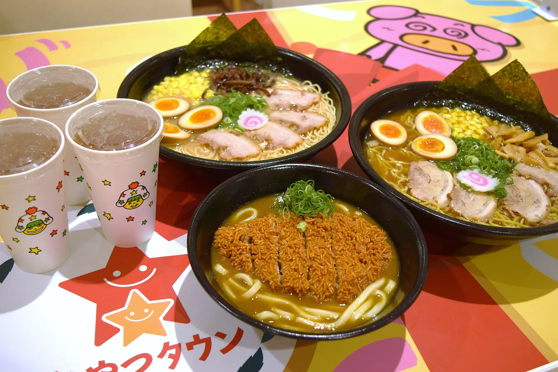 ドデカイのはアトラクションだけじゃない?!子供たちにも大好評のラーメンが、通常量の2倍になって登場しました。「超超ドデカイブタメン豚骨ラーメン」と「超超ドデカイオリジナル醤油ラーメン」の2種類は、大きくなっても変わらぬおいしさ。うま味たっぷりのスープに麺が絡み、箸がどんどん進みます。卵にチャーシューにコーンにネギに…トッピングもあふれるほどで飽きがきません!