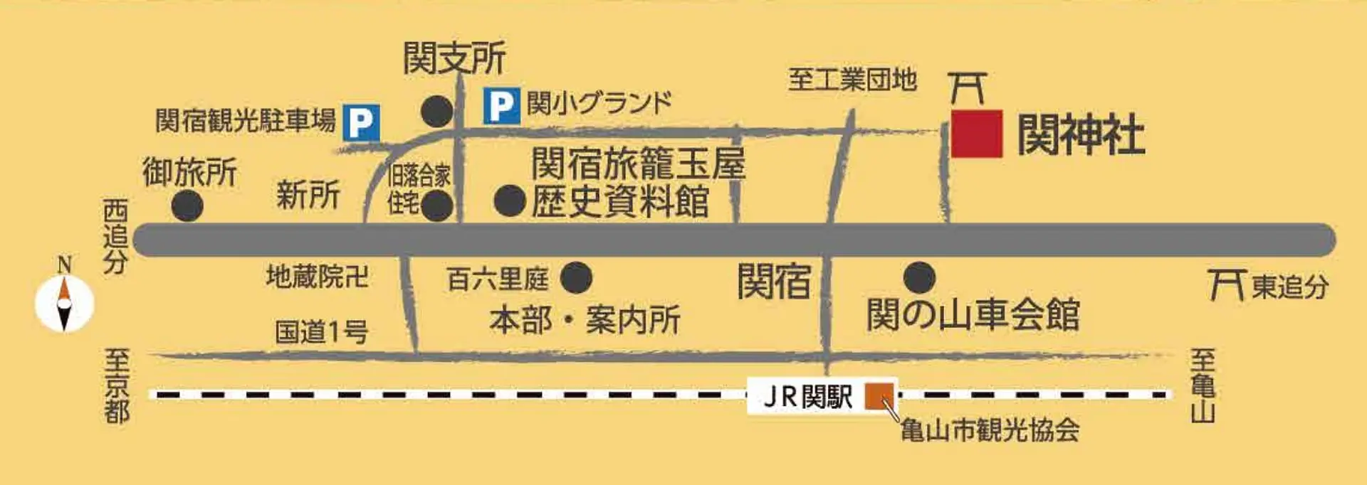 お車でお越しの場合は、関宿観光駐車場、関小学校グラウンド(臨時駐車場)をご利用ください。