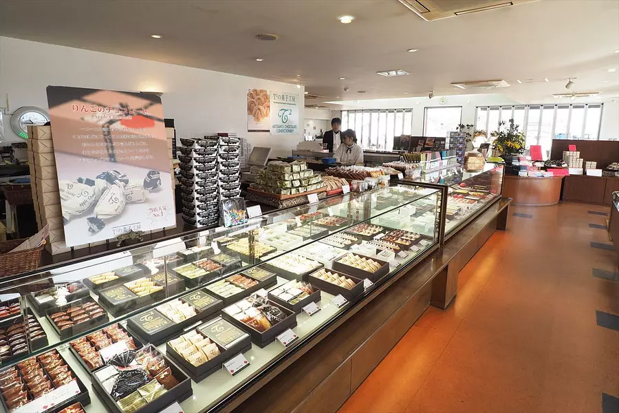 T2の菓子工房ハーバー店に伺いました おみやげに人気のりんごのチョコレートやビッツチョコレートボール、さらにカフェをご紹介