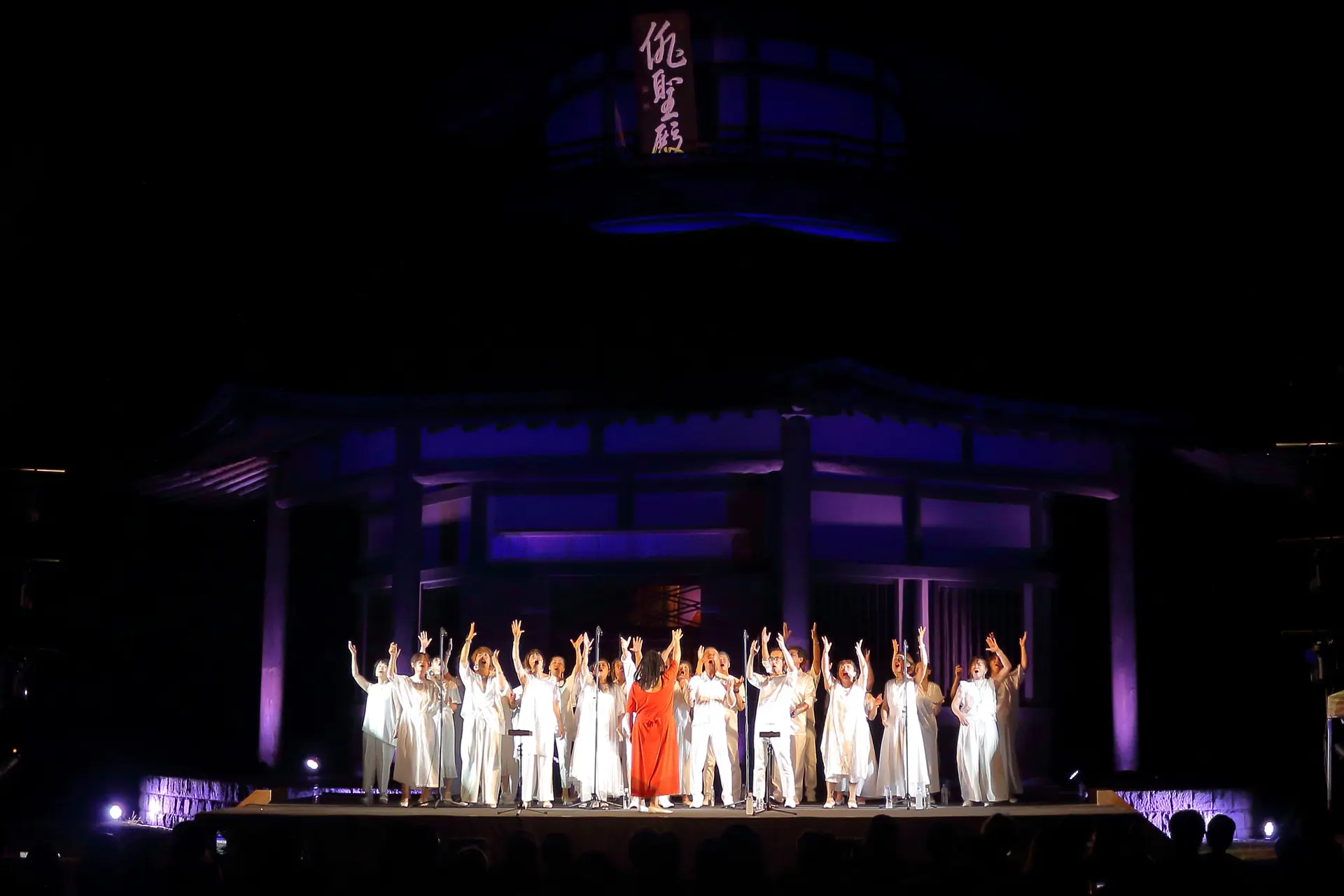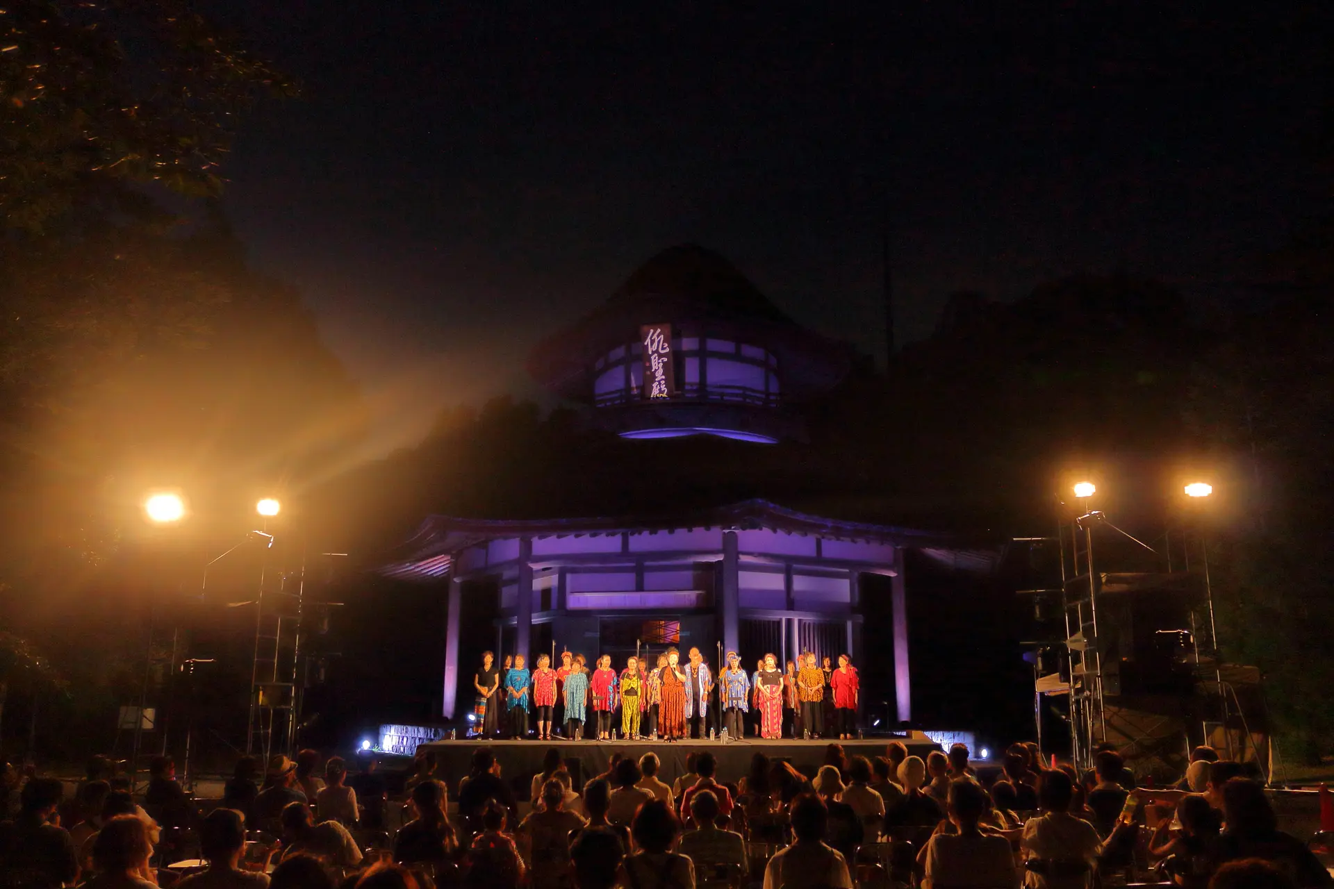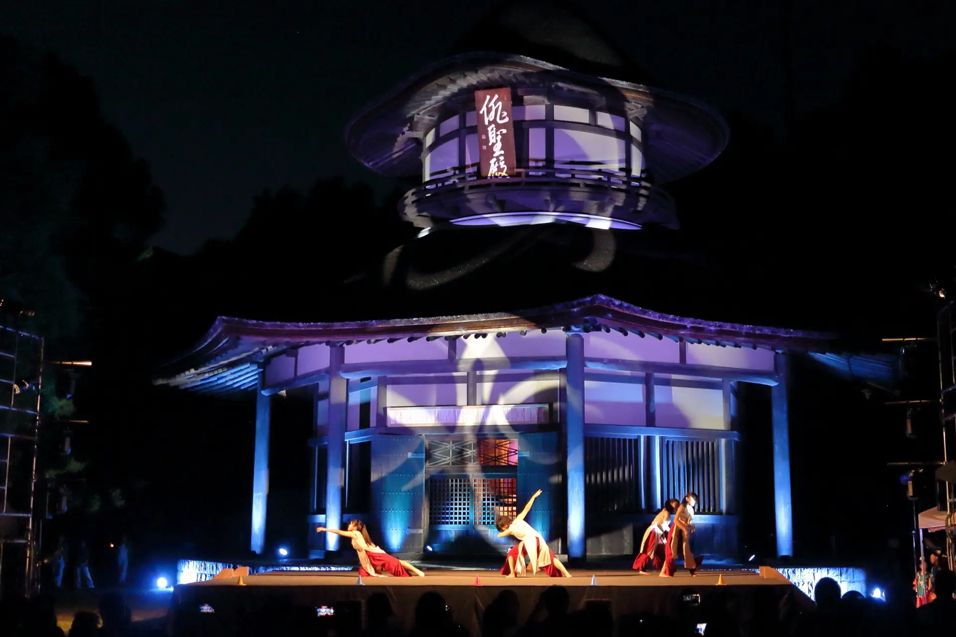 Night Liveが開催される俳聖殿は、色鮮やかな光でライトアップされます。