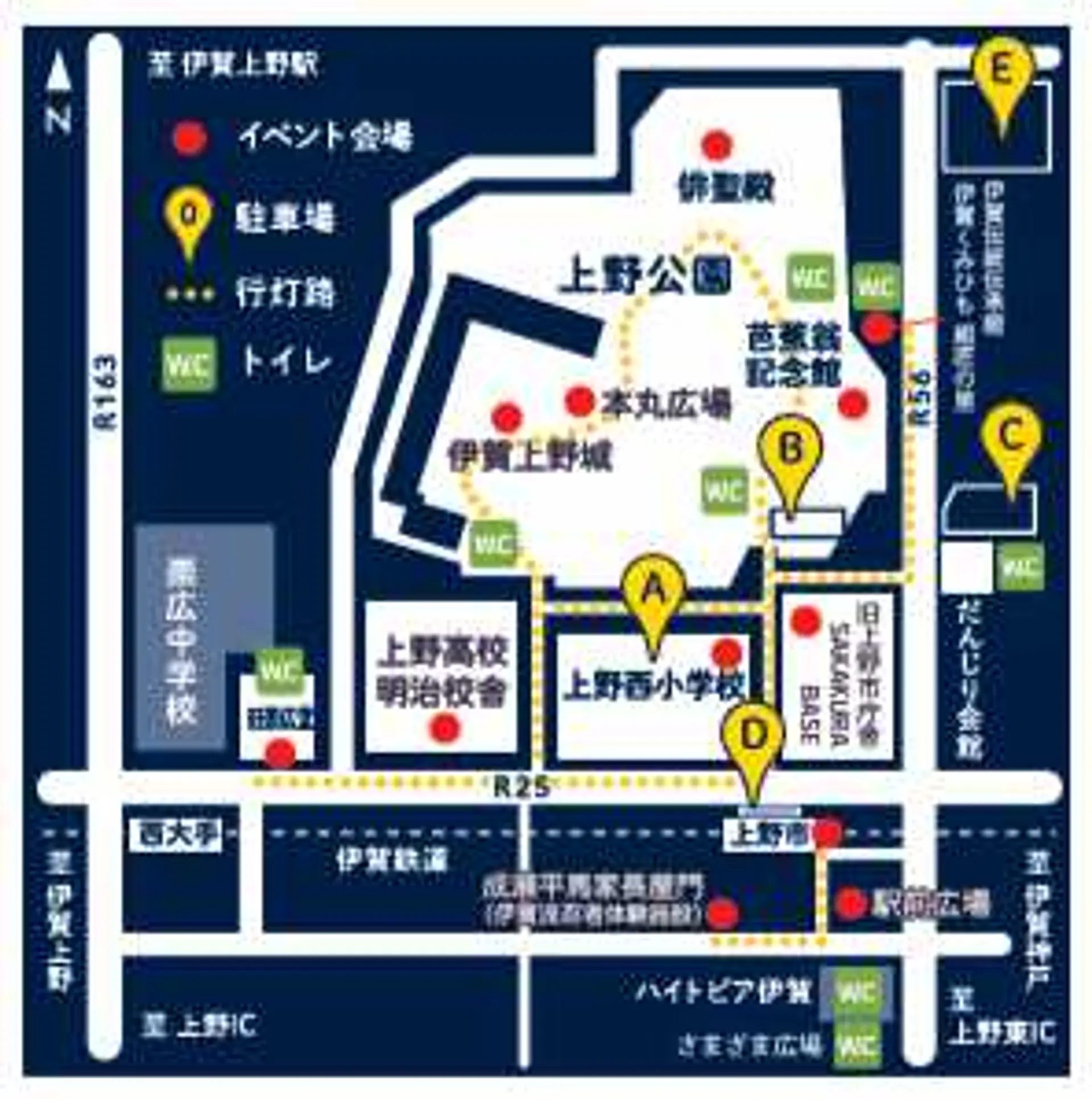 A:上野西小学校臨時駐車場〈17時以降利用可能(無料)〉
