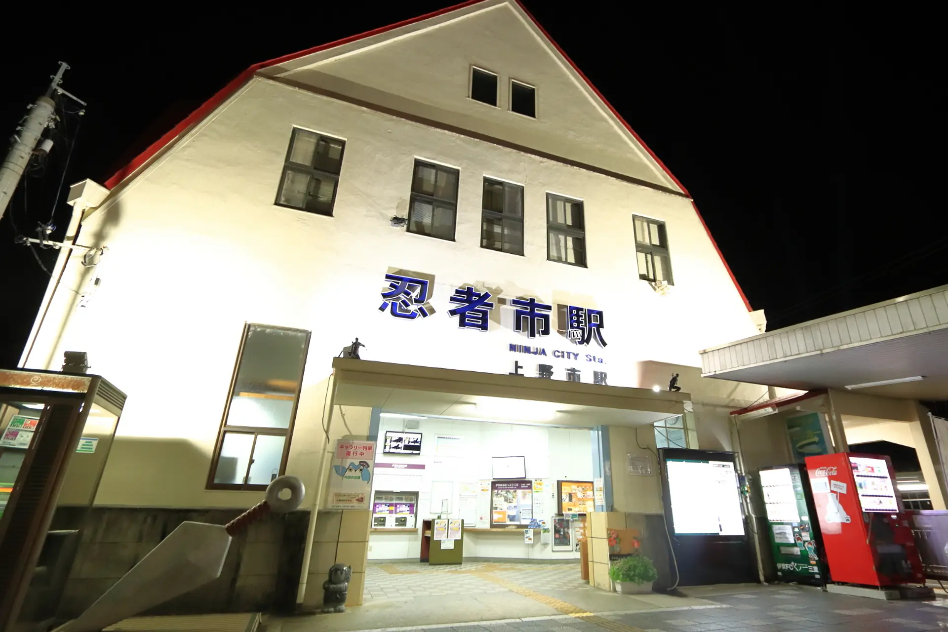 伊賀上野の交通玄関口でもある忍者市(上野市)駅も美しく浮かび上がります。