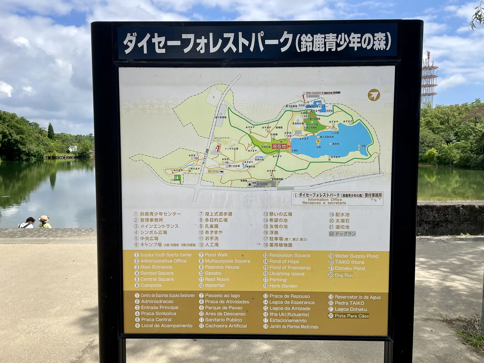 「ミジュマル公園 in すずか」はダイセーフォレストパーク(鈴鹿青少年の森)内の森に囲まれた池のほとりにあります。F1などモータースポーツの「聖地」である鈴鹿サーキットに近いので、遠くから工ンジン音が聞こえることもあるんですよ!自然に囲まれながら、モータースポーツの聖地鈴鹿を感じられるスポットなんです👍
