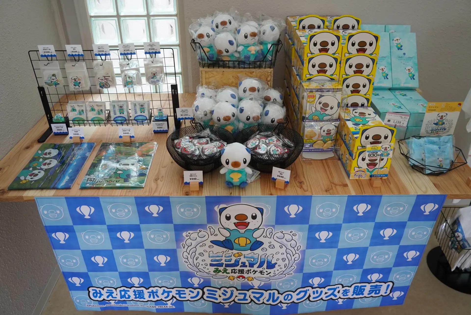 スズカト受付横に販売コーナーが設置されています。この機会に、様々な「三重県×ミジュマル」ご当地コラボ商品をはじめとしたミジュマルのグッズをゲットしましょう!