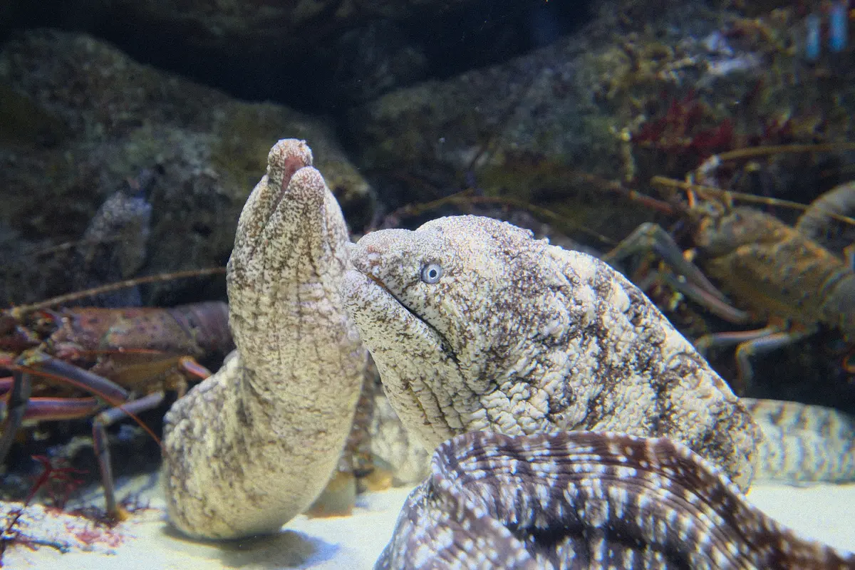 陸地にいたら思わずギョッとしてしまうフォルムですが、水槽越しにじっと見ていると、どこか可愛らしさも感じられます。