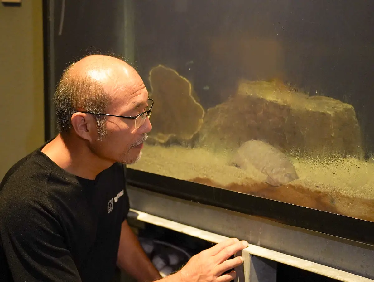森滝さんも初めて鳥羽水族館に来た個体を見たときは「動かないし、エサも食べない。弱っているのかな?」と心配したほど、とにかく動きがゆっくり。