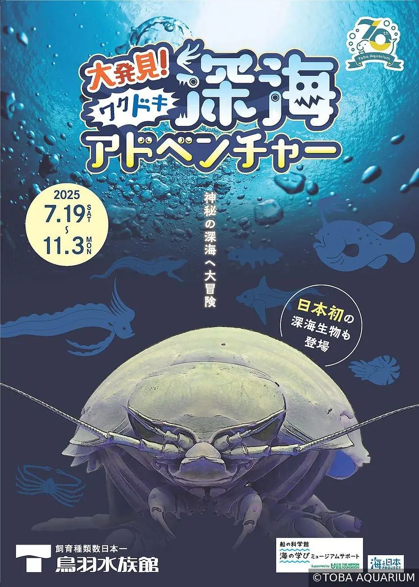 鳥羽水族館では、70周年に合わせて、2025年7月19日(土)から11月3日(月・祝)まで、深海探査の映像資料・採集された動物などを展示する、熊野灘の深海帯域にクローズアップするイベントが開催されています。