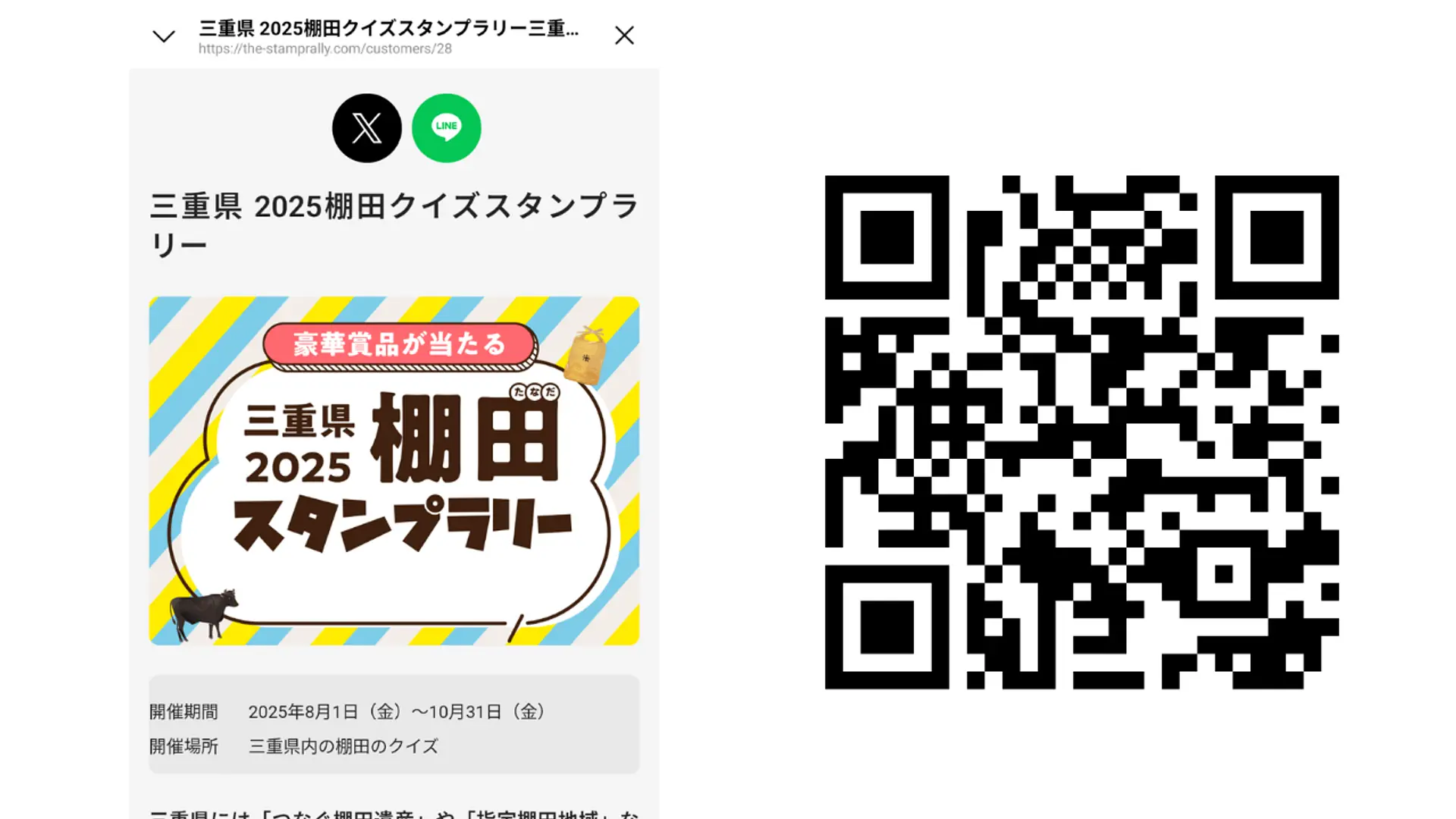 観光三重の公式LINEアカウント「かんこうみえ」を「友だち追加」して、トーク画面の「棚田スタンプラリー」のアイコンをタップすると「三重県2025棚田ドライブスタンプラリー」のアプリが起動します。