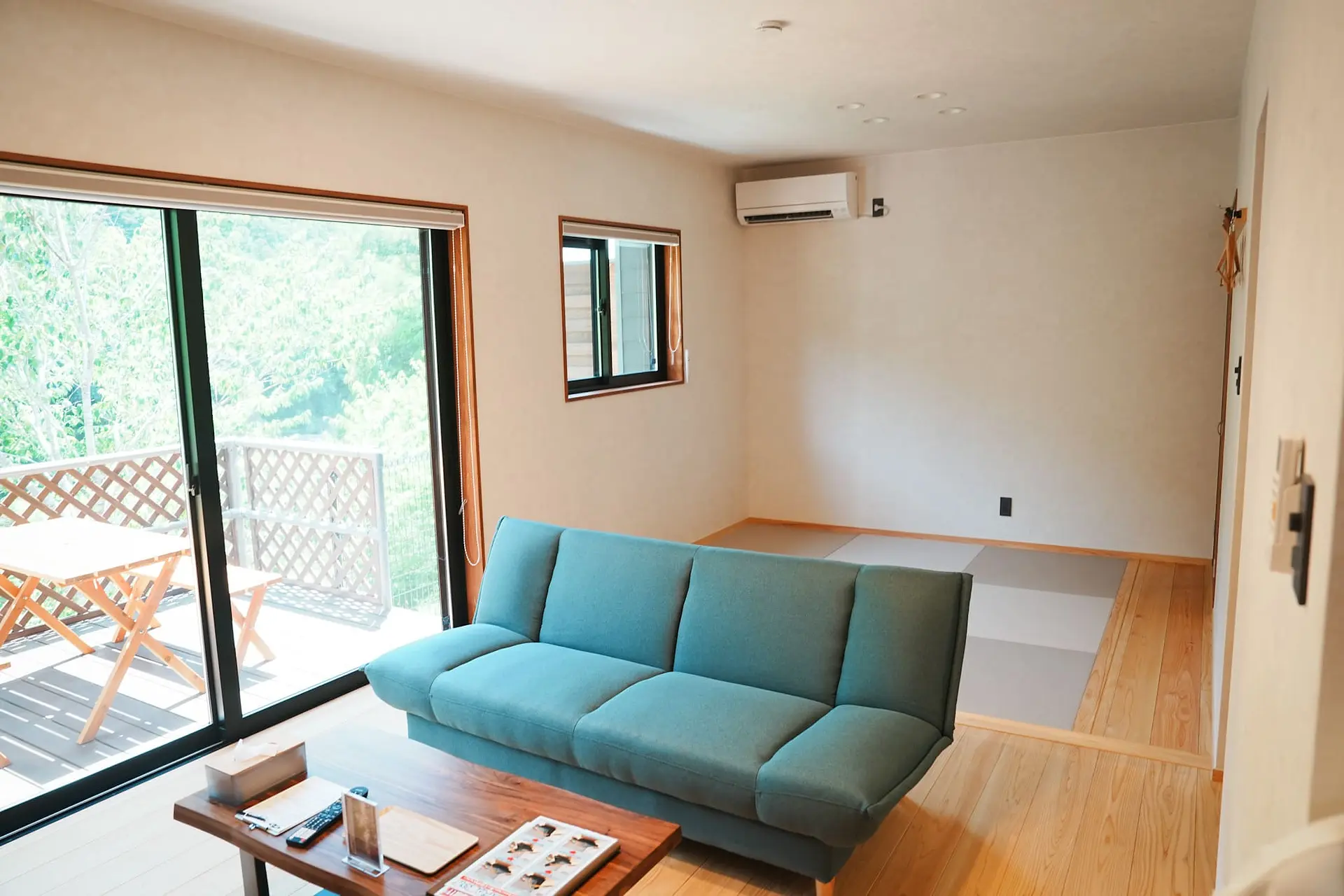 室内はファミリーが快適に使用できるように考えられた創りです。4.5畳とソファーベッドがあり、居室面積21.9㎡とゆったりとくつろげる仕様です。
