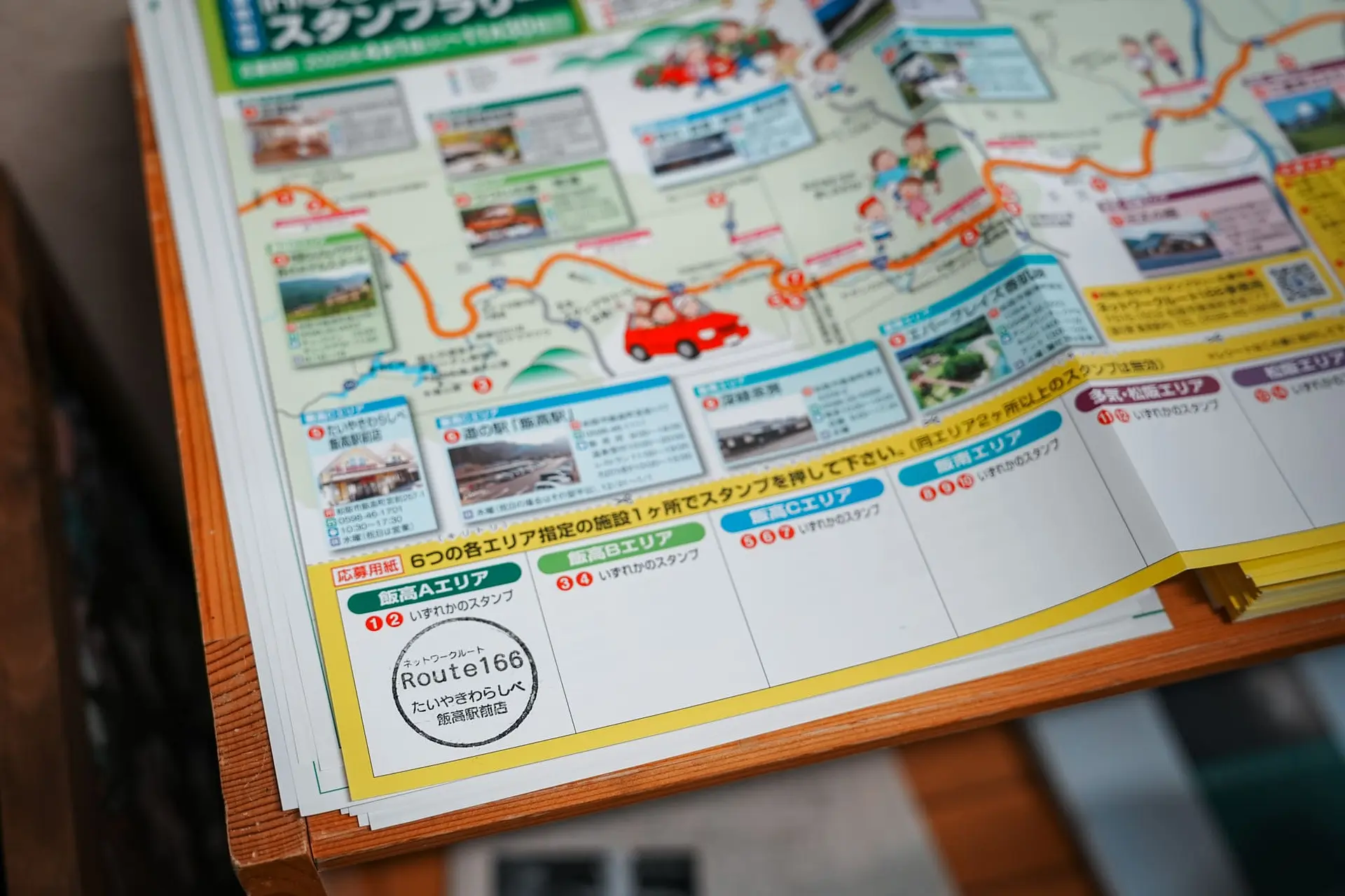 国道166号沿いにある6エリア14施設のうち、各エリア1つ計6ヶ所の施設のスタンプを集めて応募するスタンプラリー。施設を利用し、そのレシートを集めて応募すると、豪華な賞品が抽選で合計166名様に当たります。