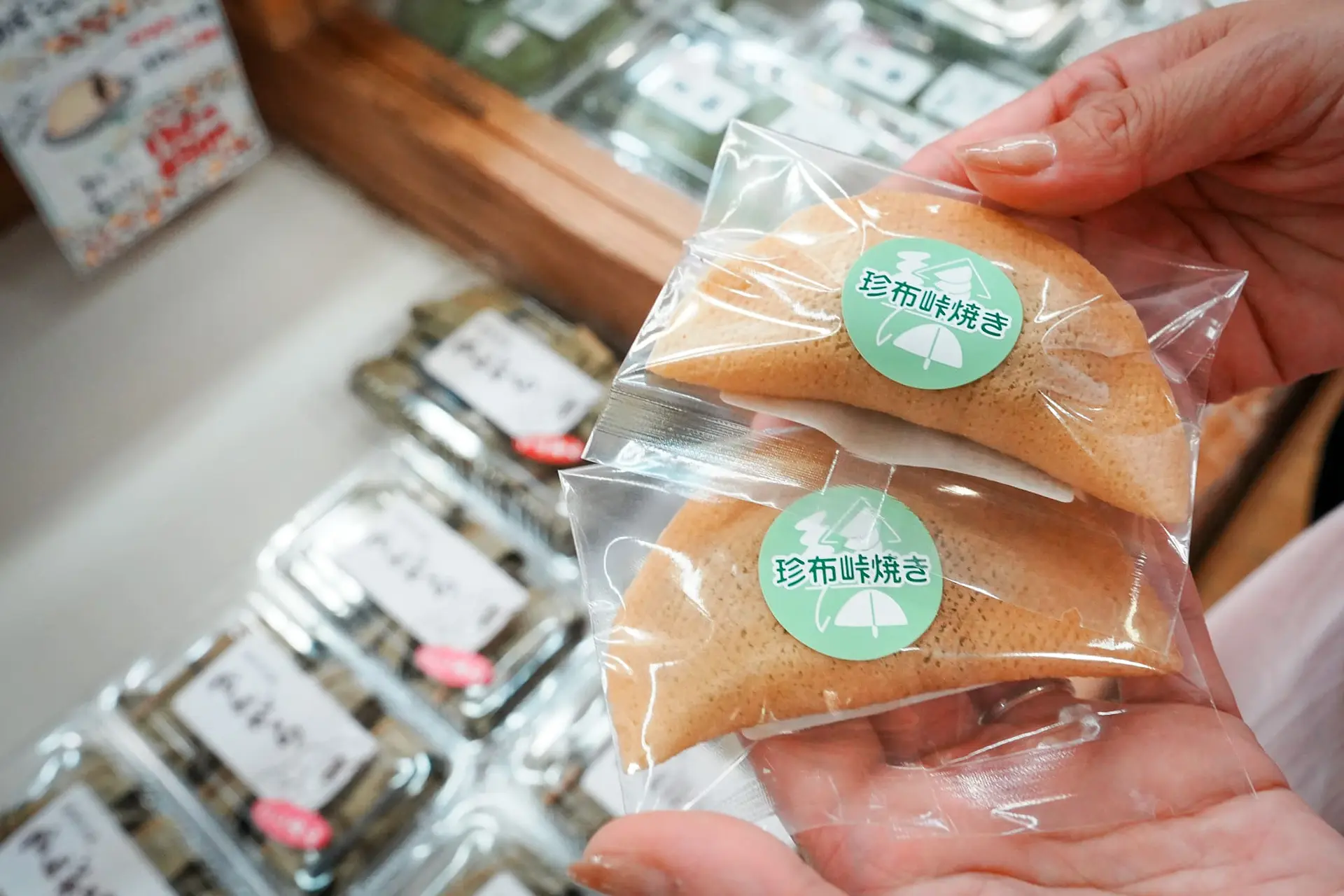 お土産にぴったりな「珍布峠(めずらしとうげ)焼き」。