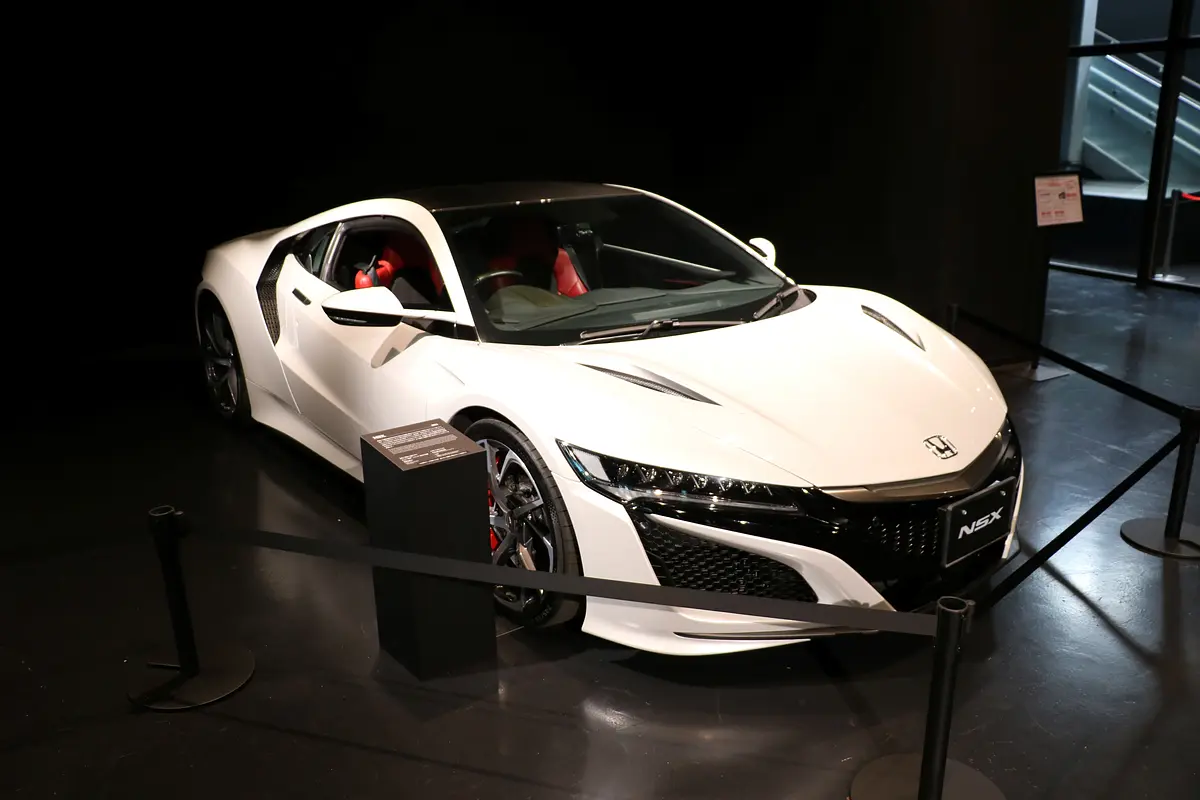 レーシングギャラリーは2階建てになっており、2階は主にF1関連のマシンなどを中心に、1階は数ヶ月で展示内容が切り替わる企画展エリアとなっています。取材時(2025年8月6日)は市販の四輪車と二輪車、レースで走った四輪車と二輪車がそれぞれ展示されていました。写真の白い四輪車は市販のもの。実は、Hondaのレースマシンはこの市販車をベースにマシンを設計し、レース参戦しているものもあるそう!これも知る人ぞ知る、驚きポイントの1つですよね!