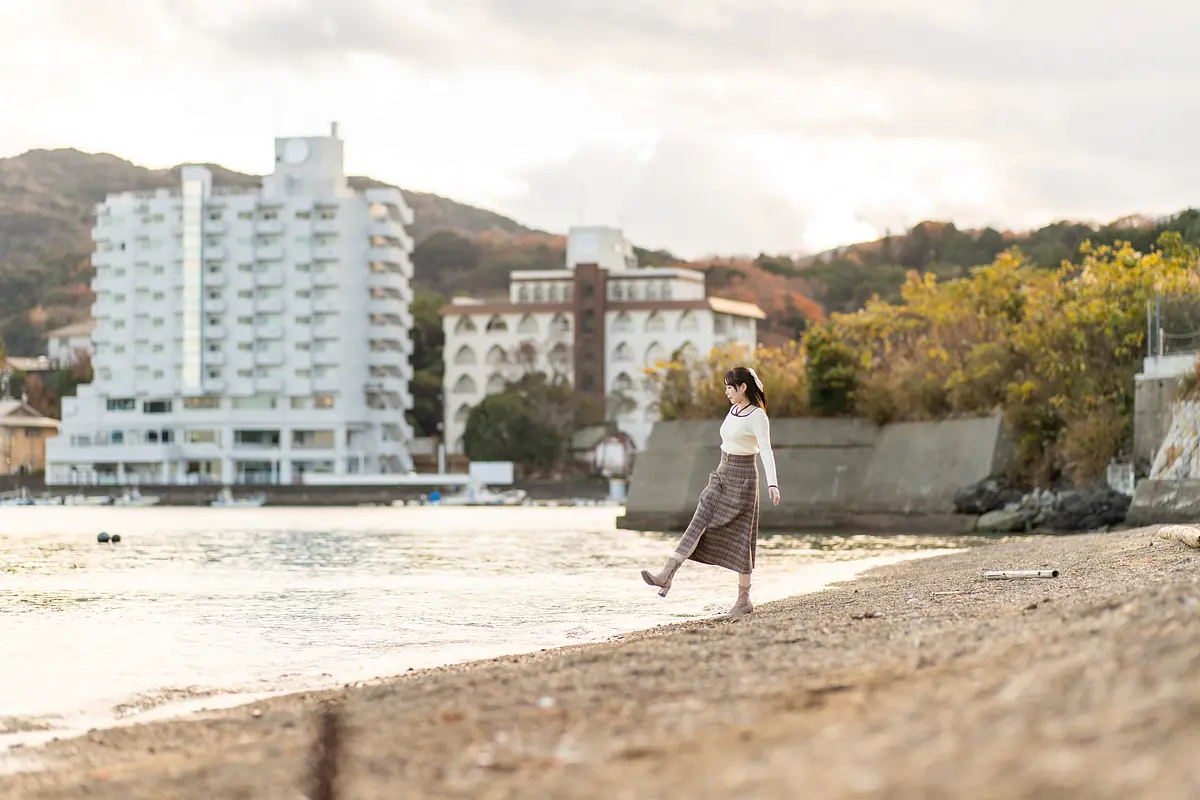 普段は東京でのモデル活動に加え、趣味のガンプラでYouTube配信を行うえりかさん。鳥羽グランドホテルへ訪れると都会の暮らしの疲れが癒されるそう。