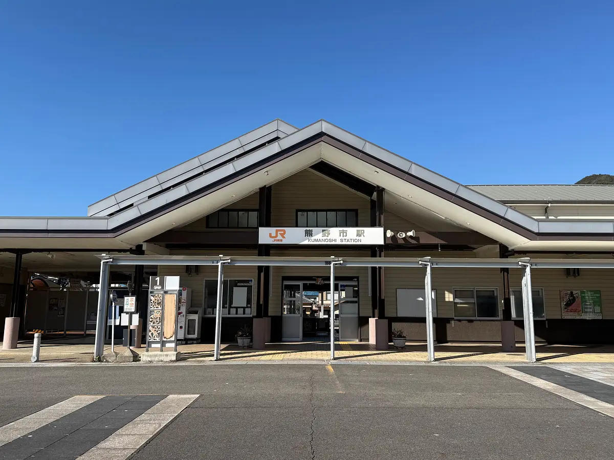 旅の始まりは「JR熊野市駅」から。名古屋駅からは特急「南紀」で直通約3時間。大阪駅からは近鉄特急を利用し松阪駅で乗り換えて約3時間半ほどで到着します。