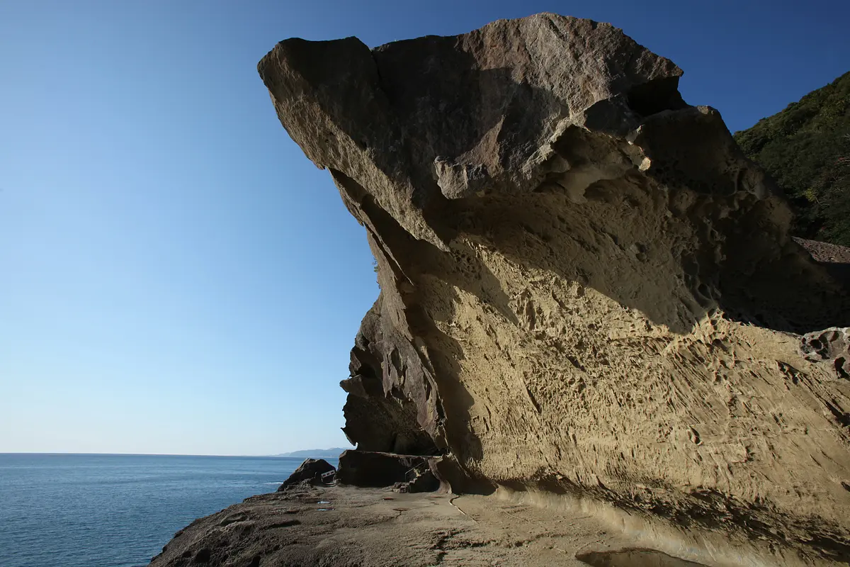 最初のスポットは、国の名勝・天然記念物であり世界遺産にも登録されている「鬼ヶ城(おにがじょう)」。地震による隆起や風化、波の浸食によって造り出された大岩壁は圧巻の迫力です。自然が長い年月をかけて彫刻した芸術的な景観をお楽しみください。