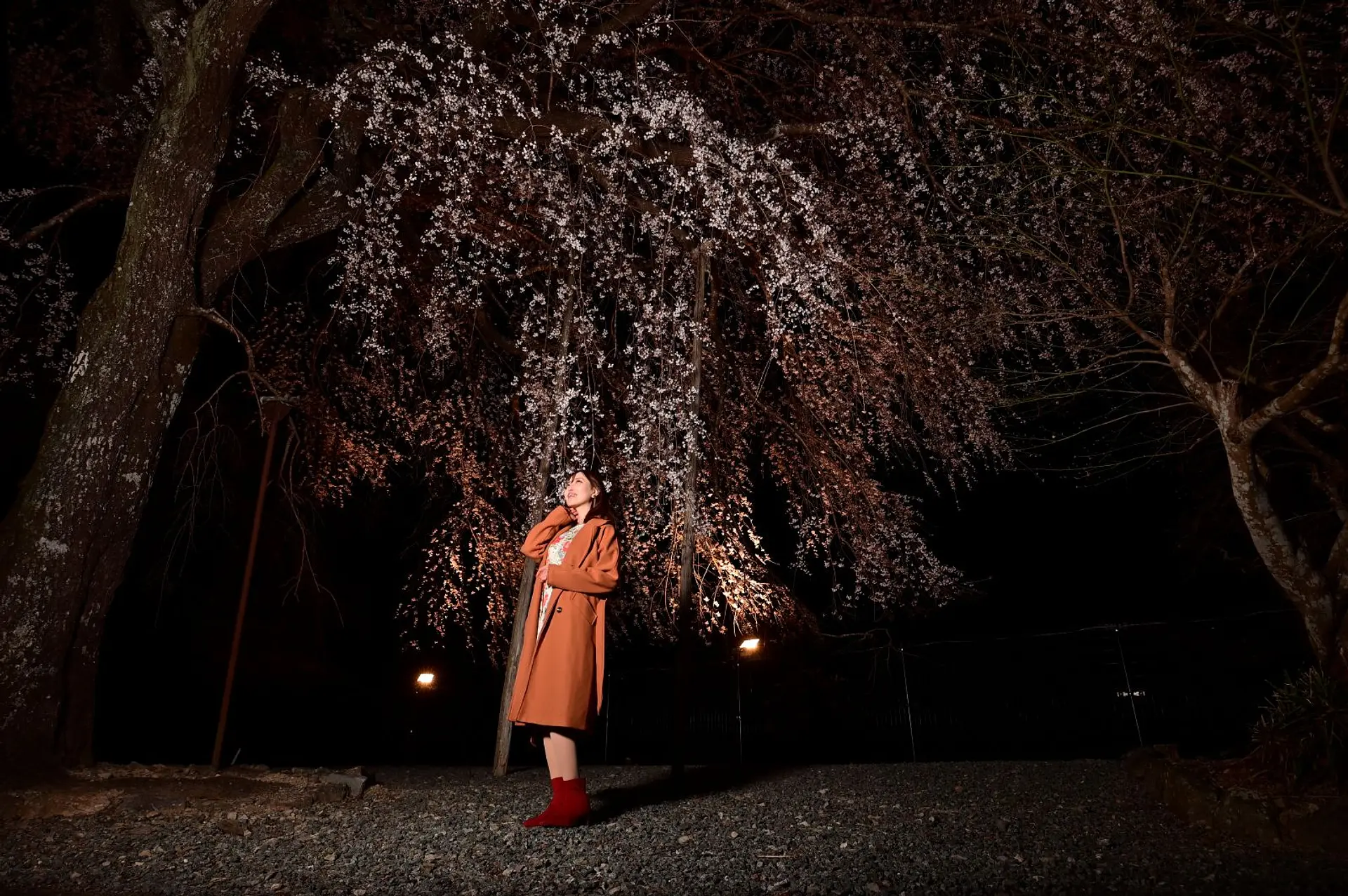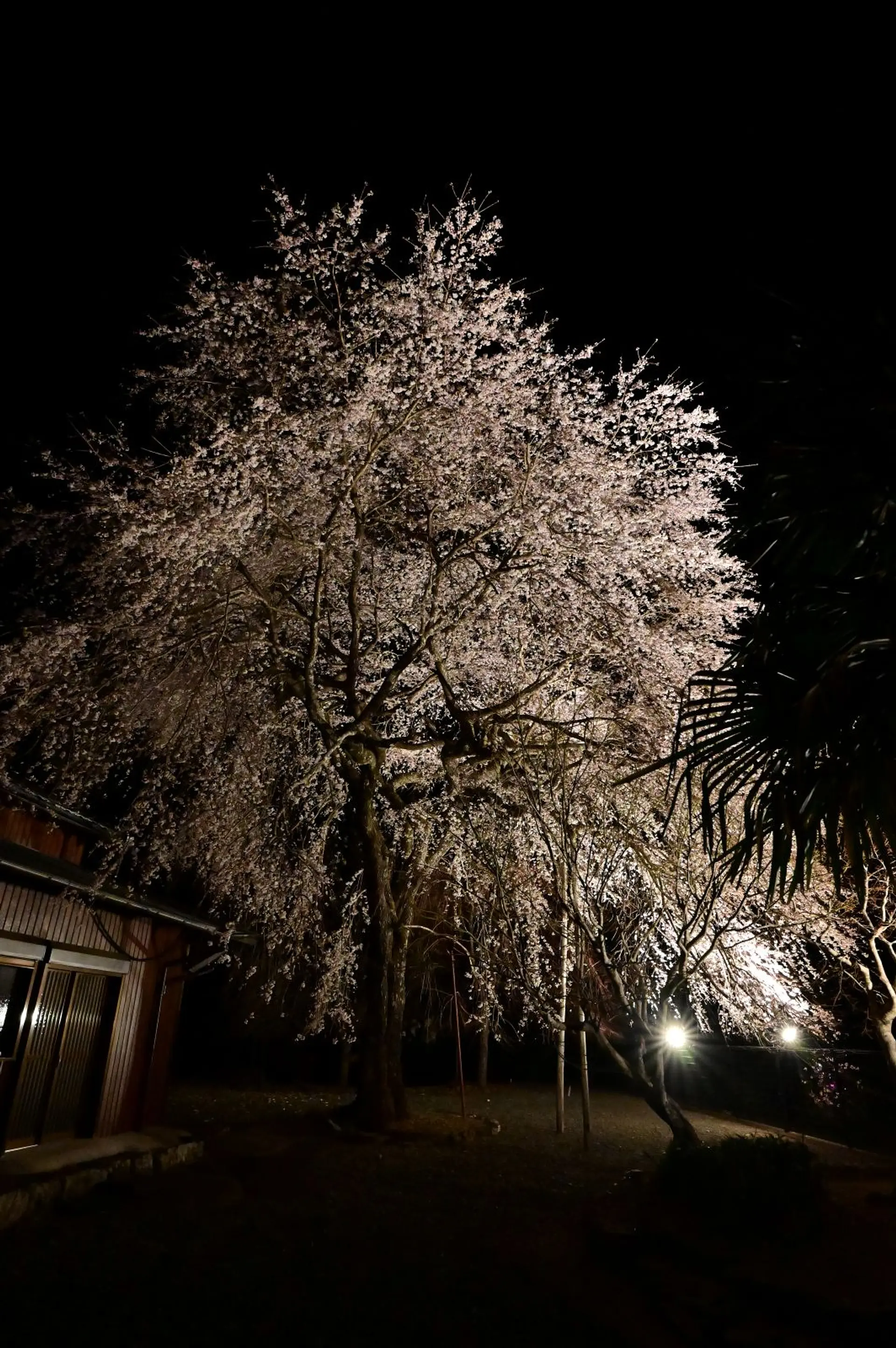 昼とはまったく違う表情を見せる枝垂れ桜は、静かな感動をそっと届けてくれます。