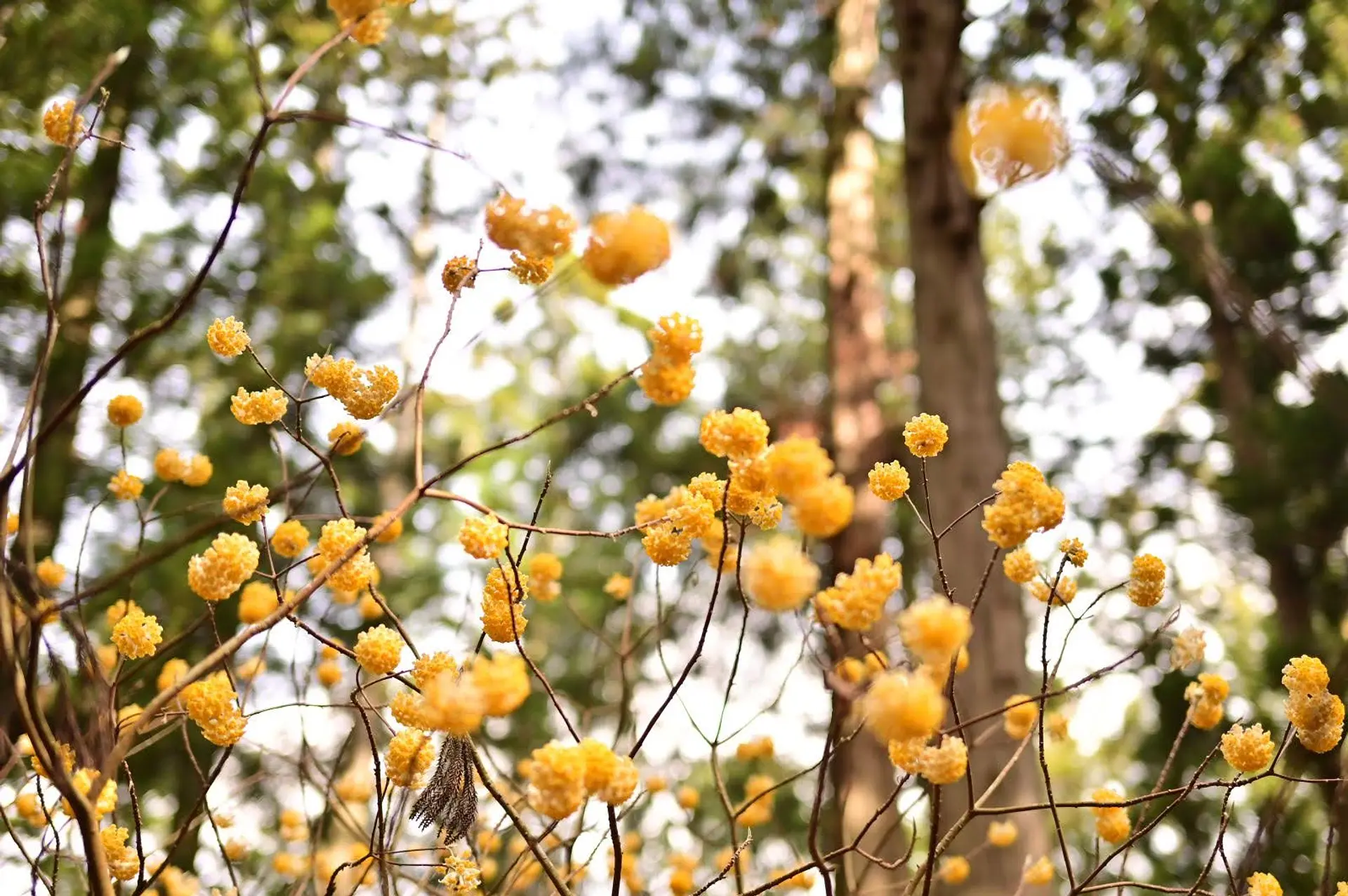 木漏れ日を受けて星空のように輝くミツマタは幻想的で、光に包まれたような素敵な写真を撮ることができます。