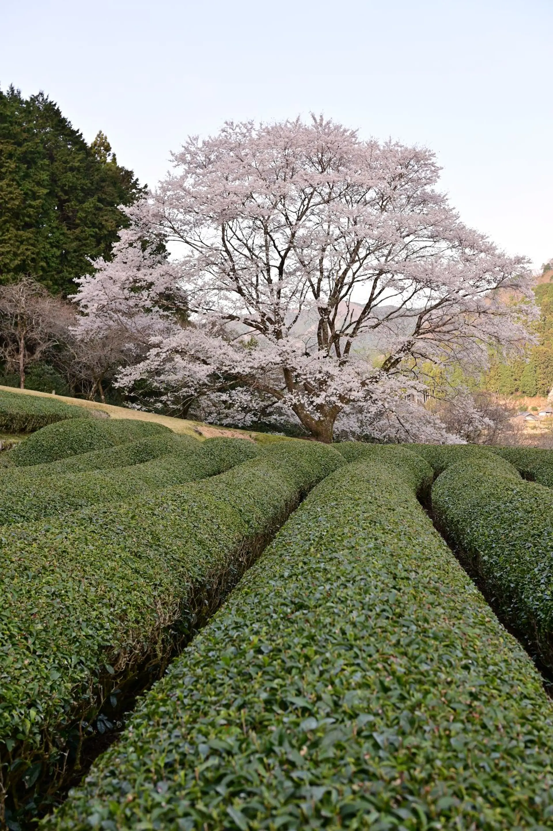 山あいの集落と茶畑の中に佇む淡墨桜は、近づくほどに凛とした美しさが伝わってきます。