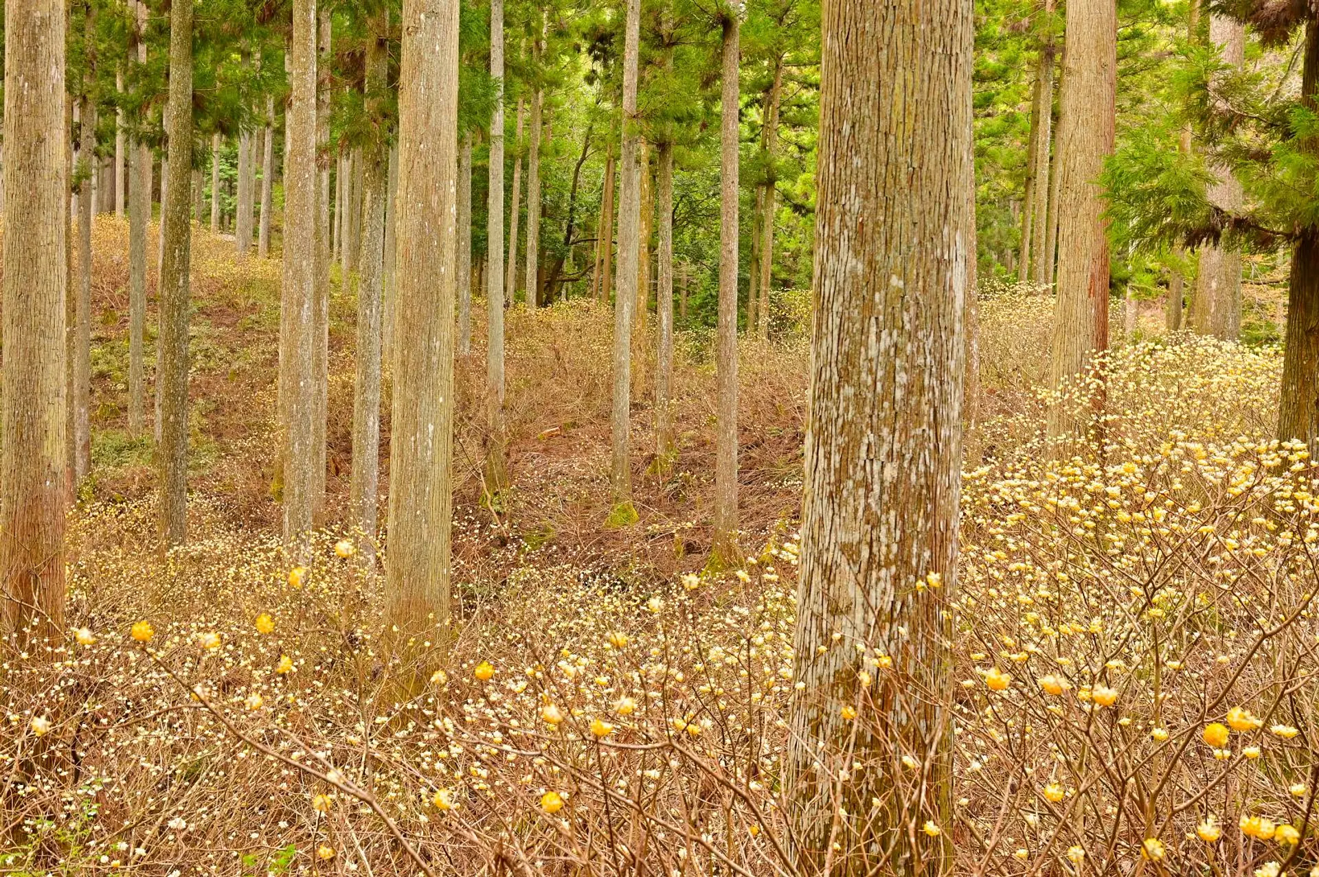 森の中へ一歩足を踏み入れると、黄色い花が一面に広がる別世界。