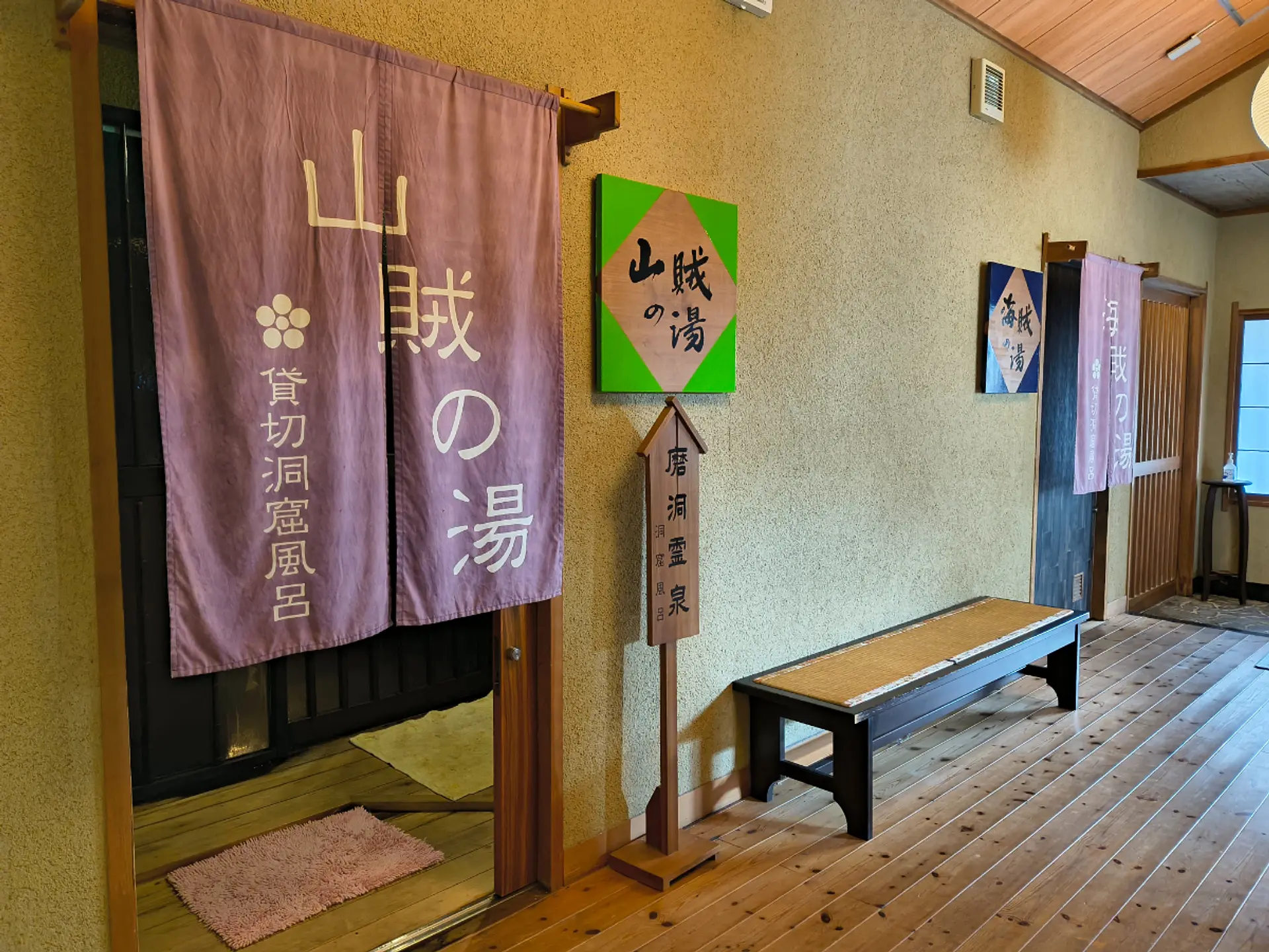 貸切洞窟風呂には、「山賊の湯」と「海賊の湯」の2室があり、湯は「磨洞温泉」となります。貸切制のため、周りを気にせずゆっくり過ごせるのも魅力で、ファミリーやカップル、グループでの利用にも好評です。