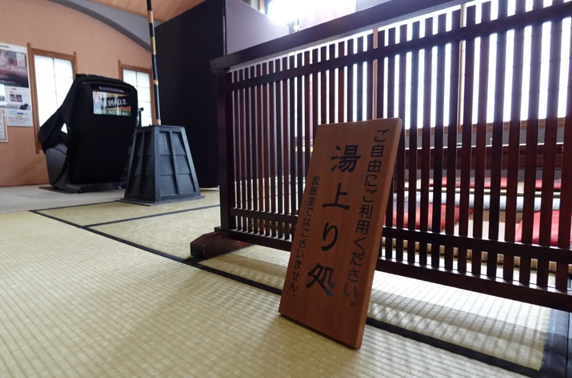 「湯上り処」は、湯上がりにゆっくり過ごせる共有スペースです。コミックが置かれているほか、有料のマッサージチェアも設置されており、入浴後のリラックスタイムにぴったり。