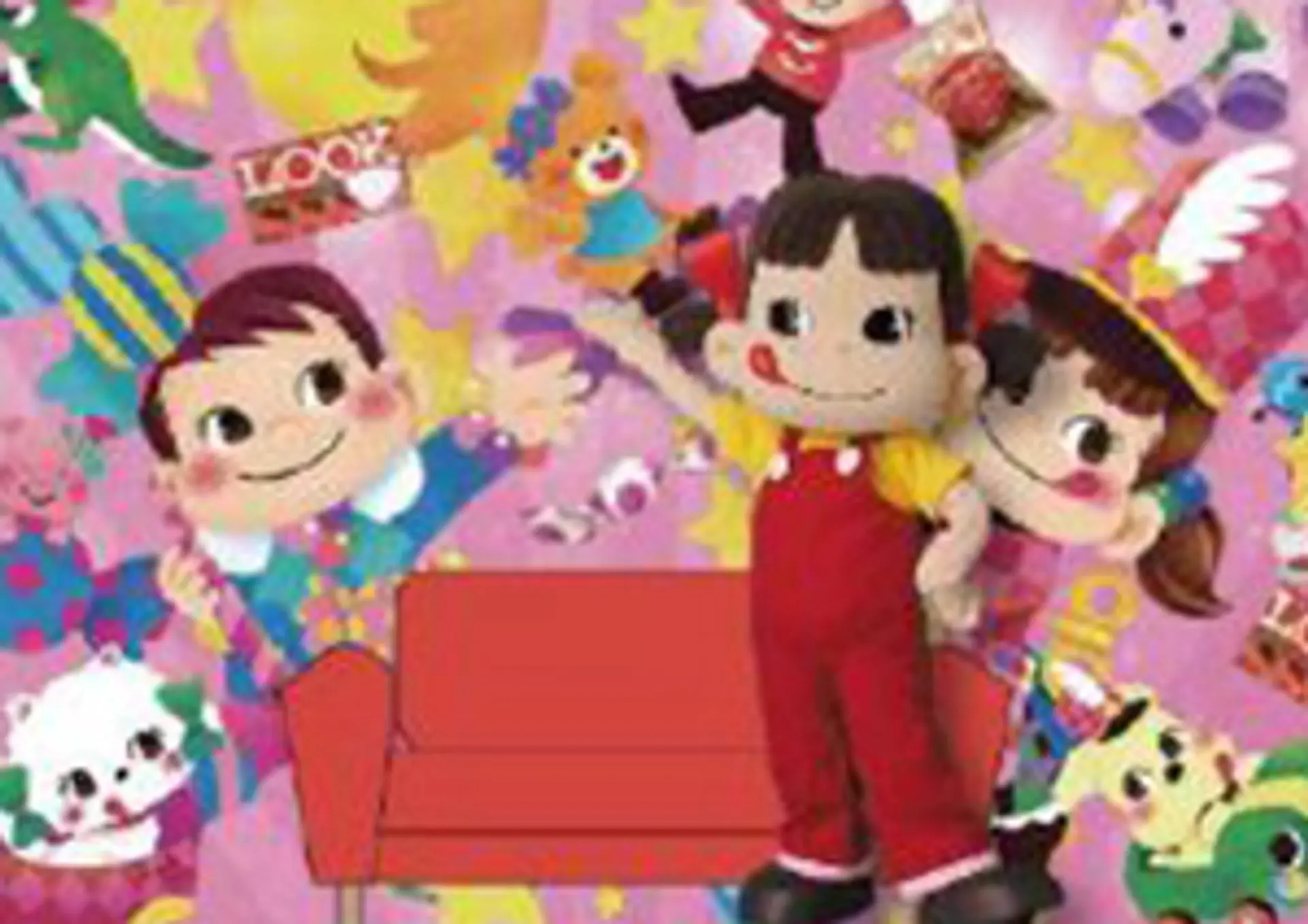 ペコちゃんの着ぐるみが1日数回ブースに現れ、一緒に記念撮影ができる。