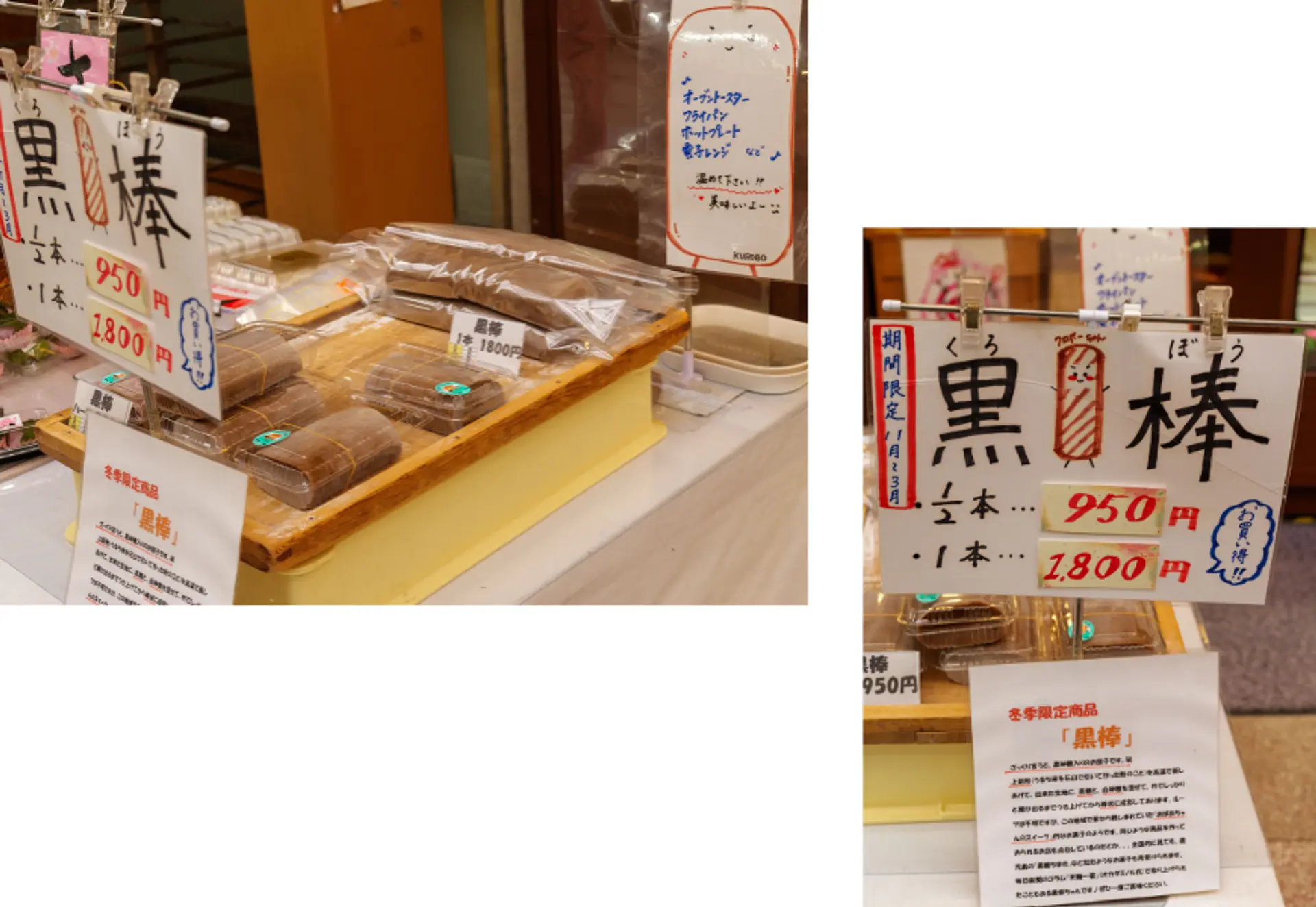 大黒屋 黒棒(950円/1/2本 1,800円/本)冬季限定3月末までの販売 黒糖味のおだんごで、スライスして食べます。