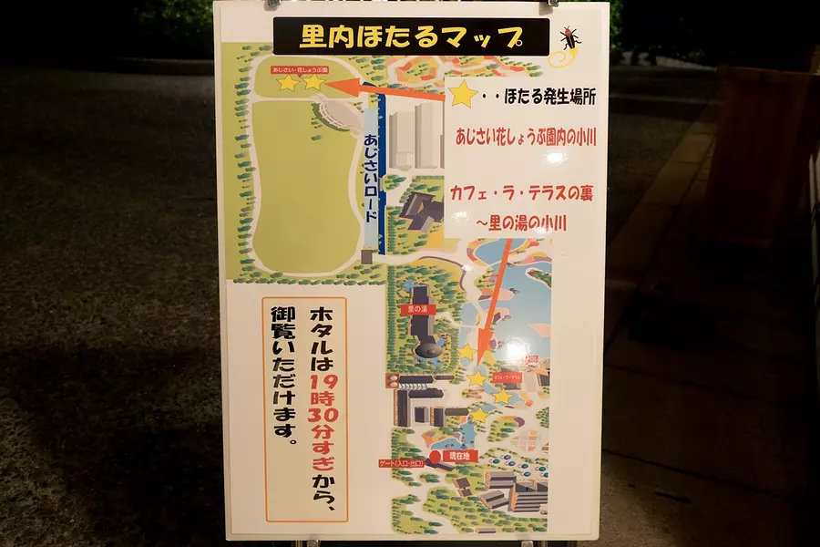 注意点:ホタルがいるエリアは足元が暗いためご注意ください