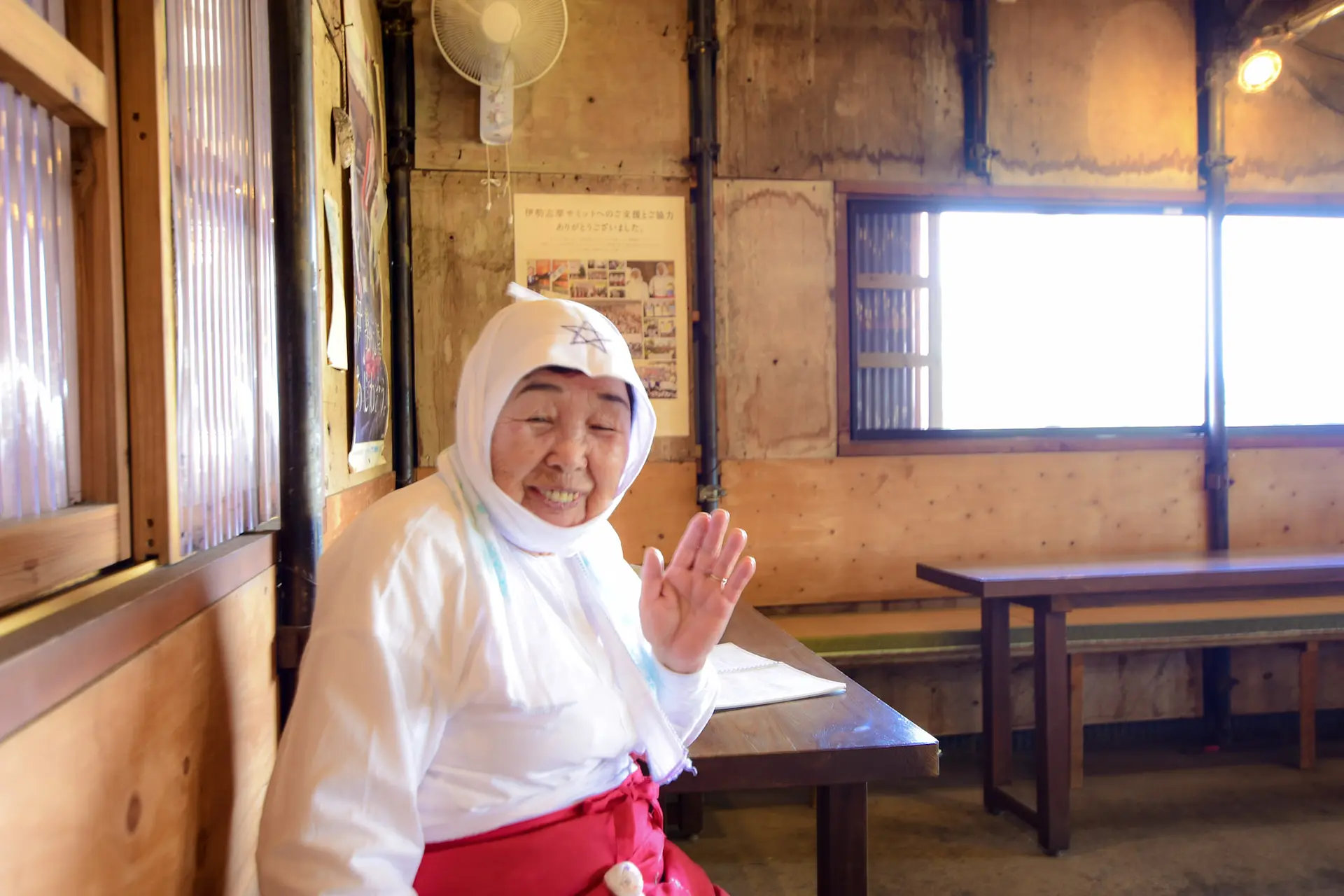 海女さんたちが集まってきて、踊りを披露してくれました。海女小屋「はちまんかまど」に、神聖な空気が満ちていました。