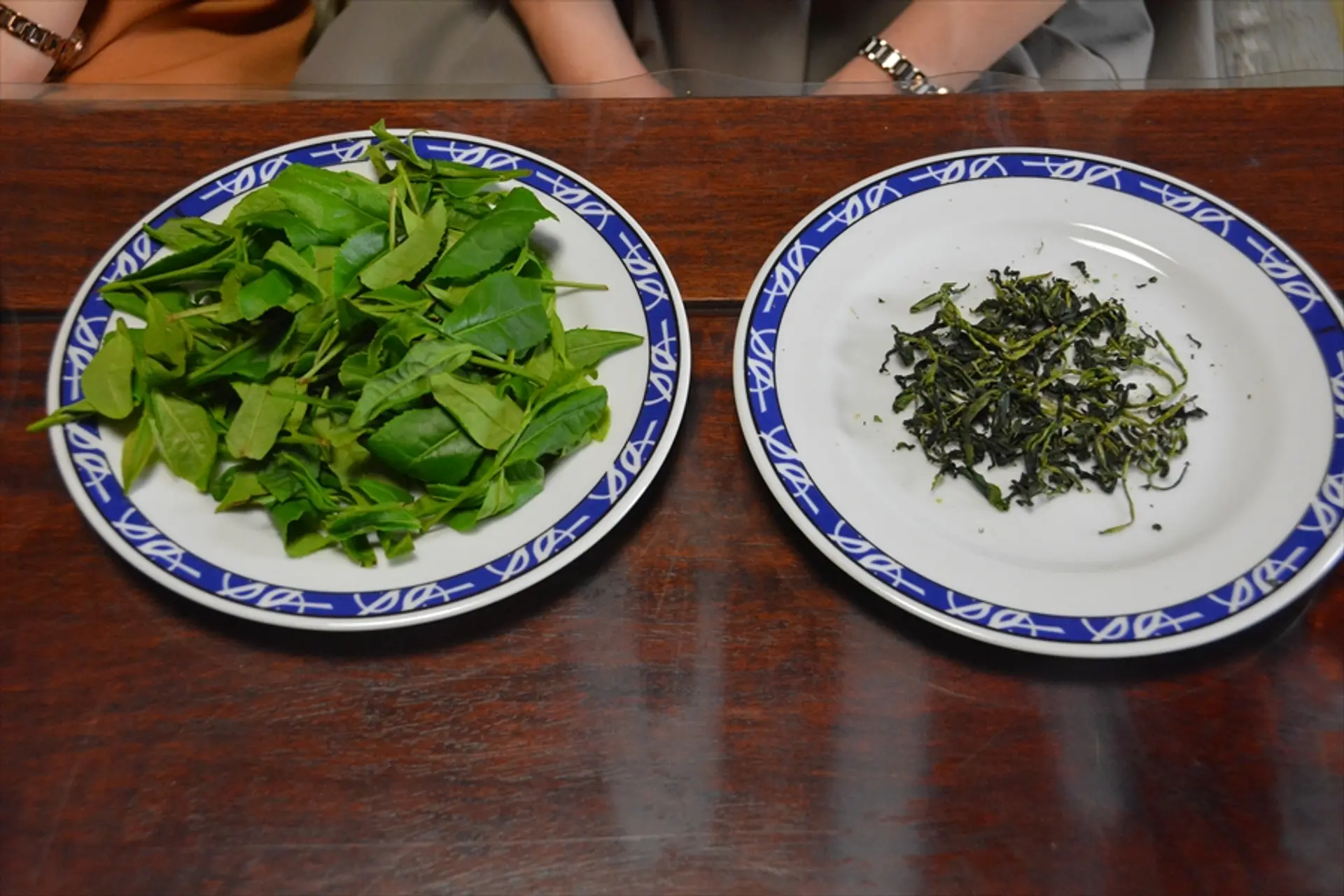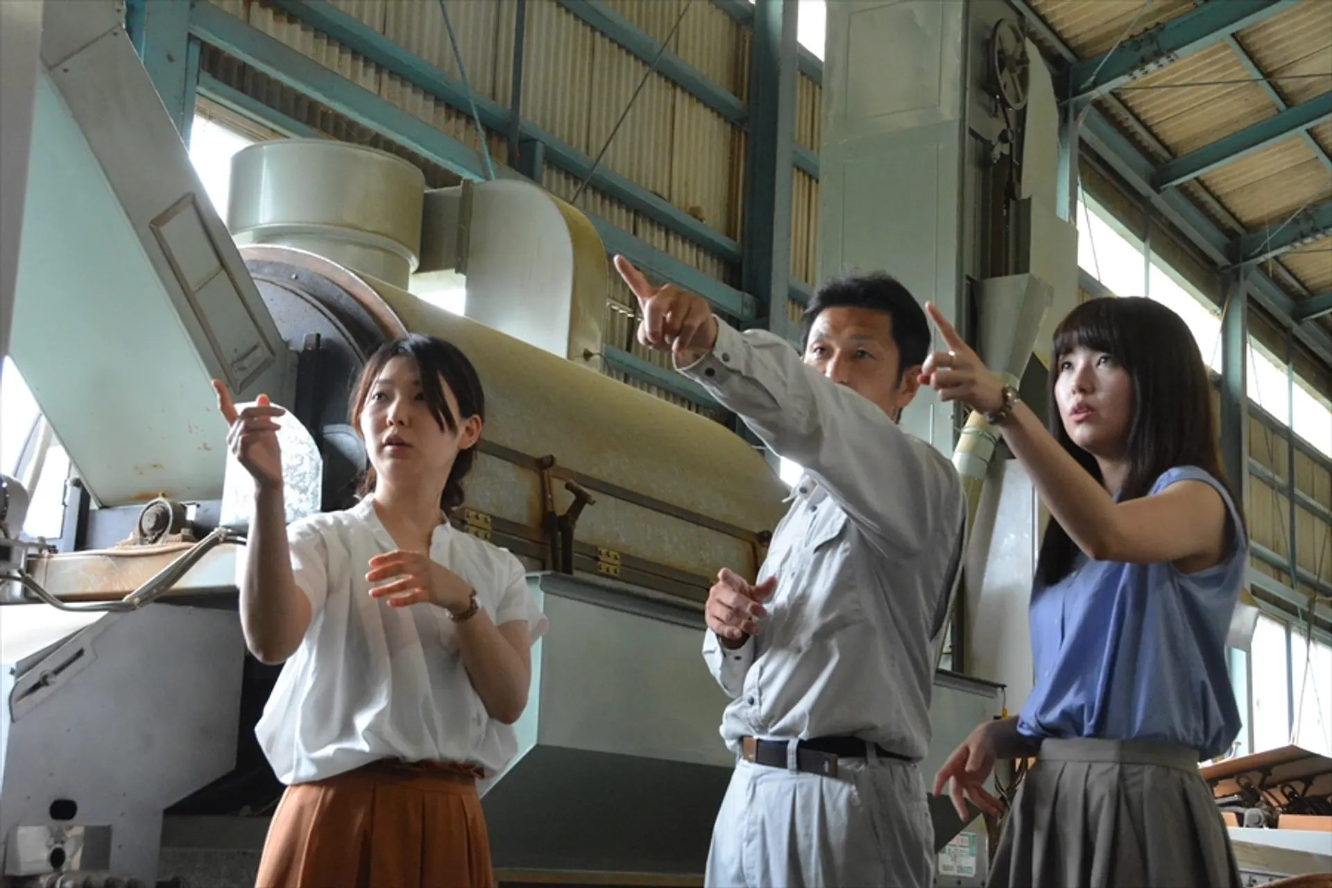 マル信緑香園五代目・伊藤典明さんのご案内の中、お茶が葉っぱの状態からどのように製品になっていくかを簡単に教わります。
