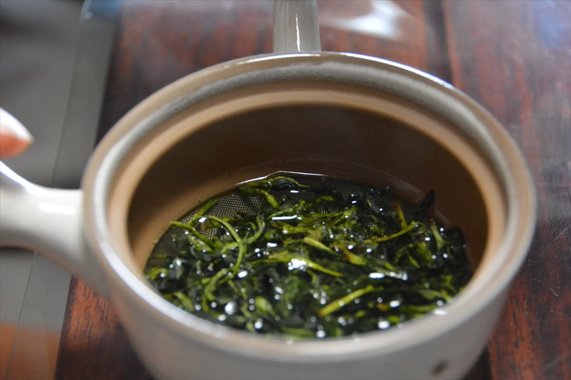 今回は少し長く置きすぎてしまったようで、ちょっと苦くなってしまいました。でも、そこはプロがついているので安心です。急須にお湯を足して、一旦湯のみのお茶を戻し、2回目のお茶淹れをすると・・