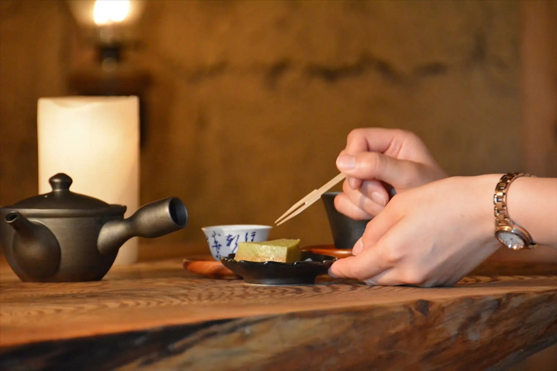 プラン内容:①簡単手もみ茶体験+②蔵でのカフェタイム