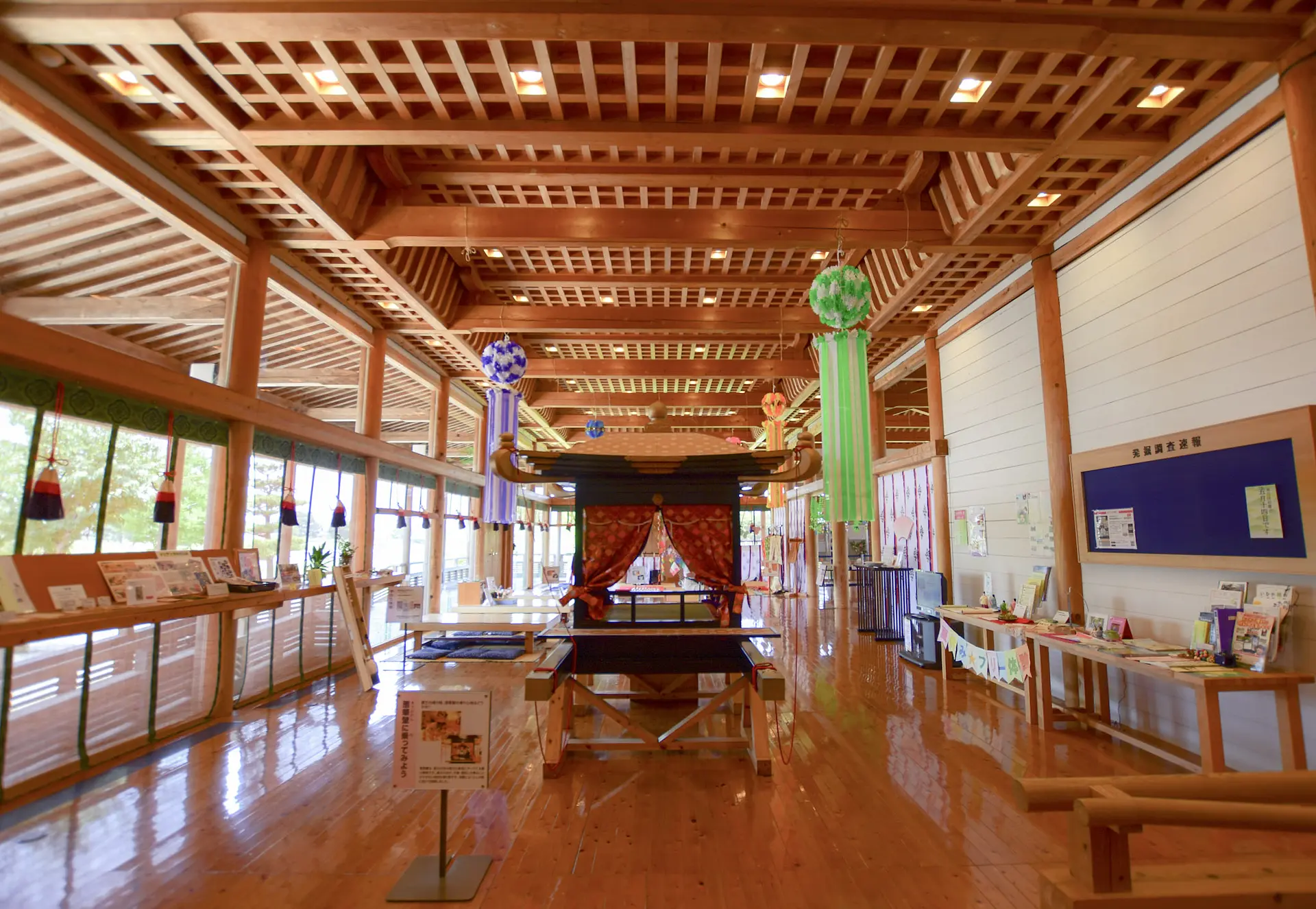 とても新しい建物で、さいくう平安の杜と竹神社、そして明和町一帯を見渡すことのできる展望デッキに加え、お土産コーナーや、お祭りの山車を飾った休憩スペースもあります。